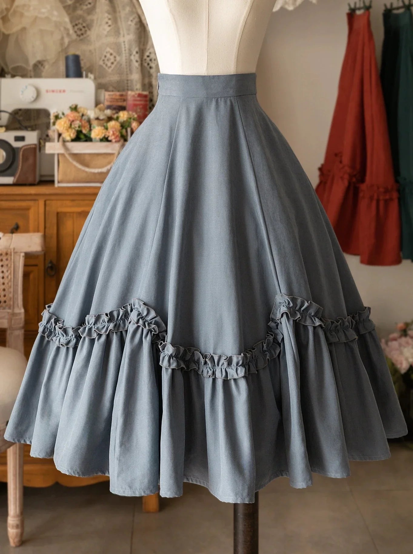 青と白のオールドスクールロリータファッションドレス 蝶結びディテール JSK セット