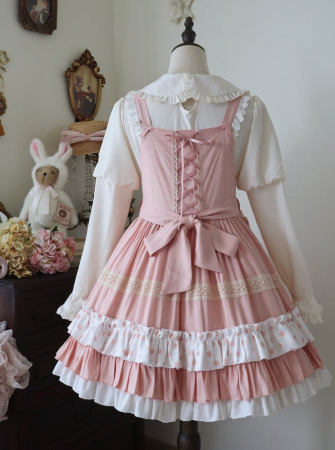 ピンクと白のオールドスクールロリータファッションドレス、蝶結びディテール、ロリータJSKセット