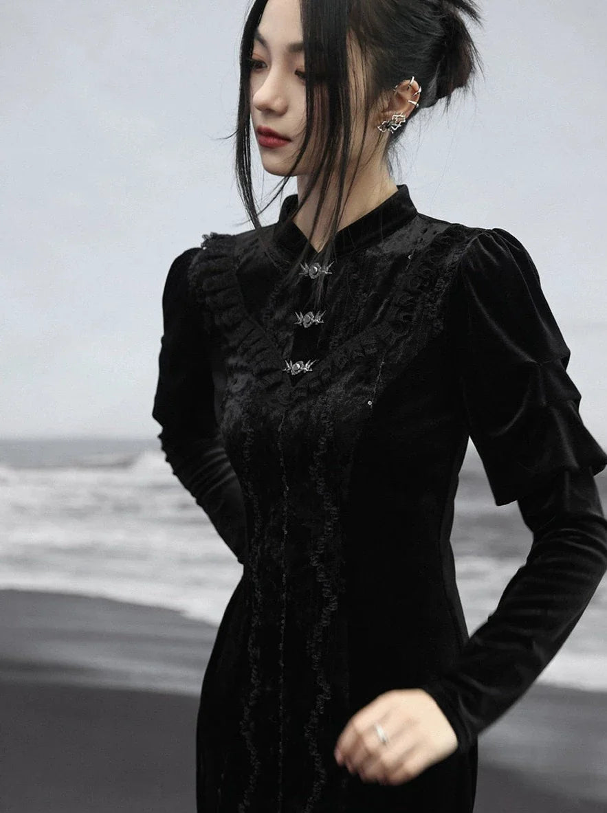 繊細なレースのスプリットデザインと魅力的なスリットが特徴の、可愛らしいレトロスカート。コーディネートに女性らしさをプラスします。ダークカラーがエレガントさと着回し力を兼ね備え、キュートでスタイリッシュな装いにぴったりです。