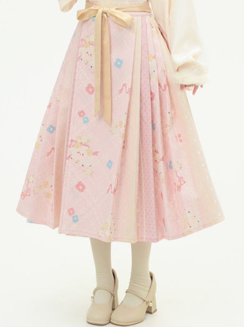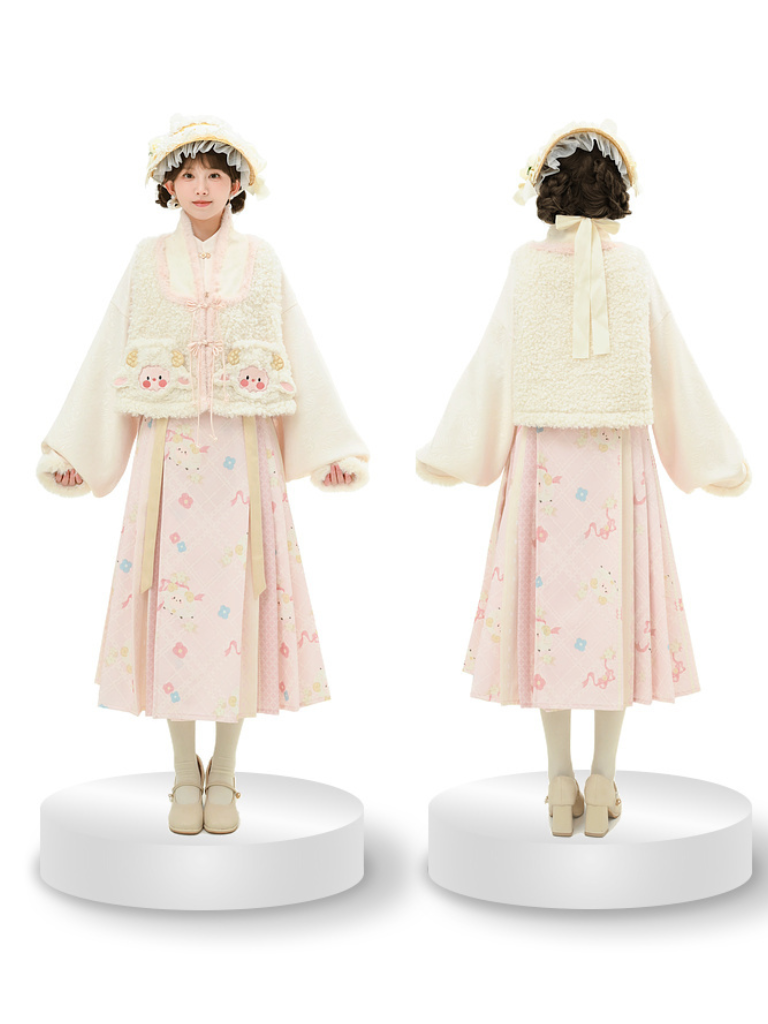 スカート シープベスト プリーツ レトロ チャイナ + ファー