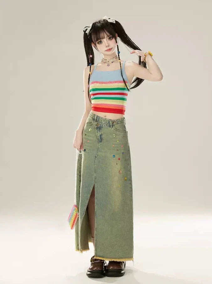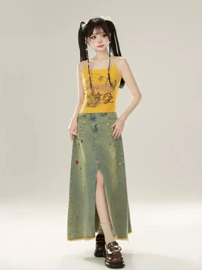 愛され続けるスカートスリットスパンコールデニムのご紹介です!スタイリッシュなスリットとキラキラ輝くスパンコールが特徴のデニムスカートは、どんなシーンにもぴったり。毎日の装いに華やかさをプラスしてくれる、目を引く一枚でワードローブをグレードアップ。