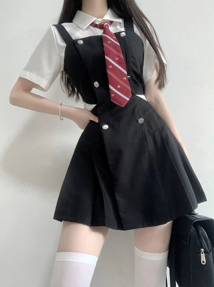 スカート スリットウエスト カレッジデザイン サスペンダー
