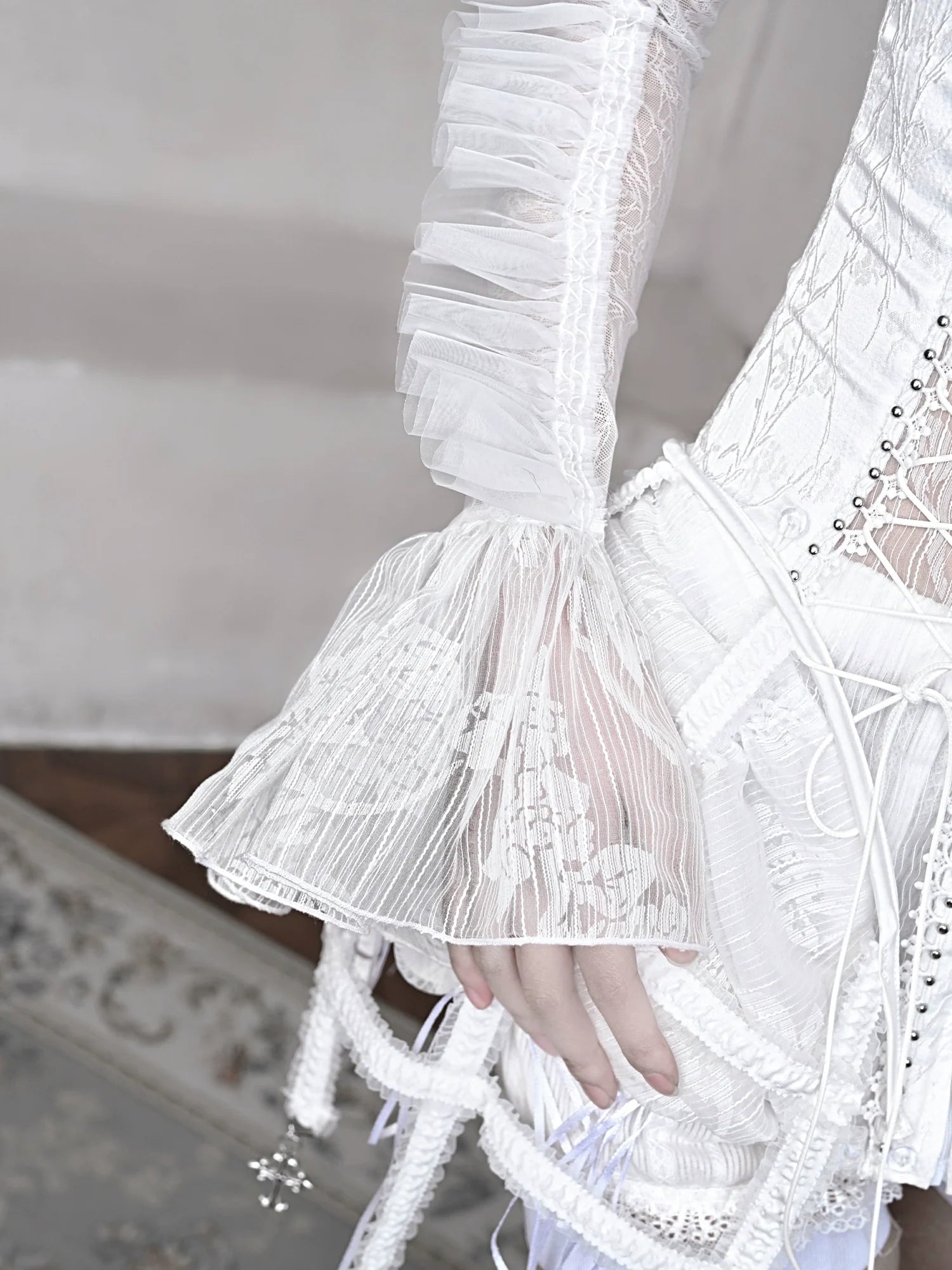 スリーピングスタンドゴシックカラーシフォンジャケットパフホワイトショートアリスシアースリーブ