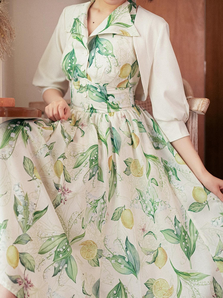 青と白のオールドスクールロリータファッションドレス 蝶結びディテール JSK セット