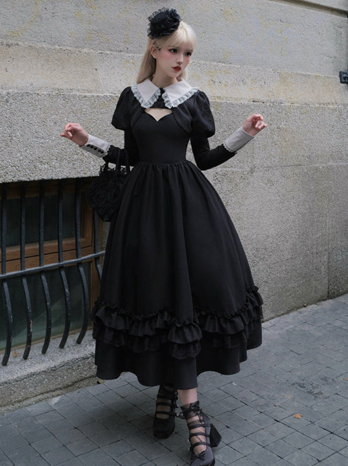 黒と白のオールドスクールロリータファッションドレス蝶結びロリータJSKセット