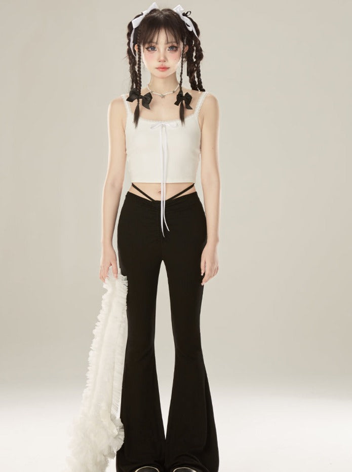 スリムフレアデザインウエストパンツ
