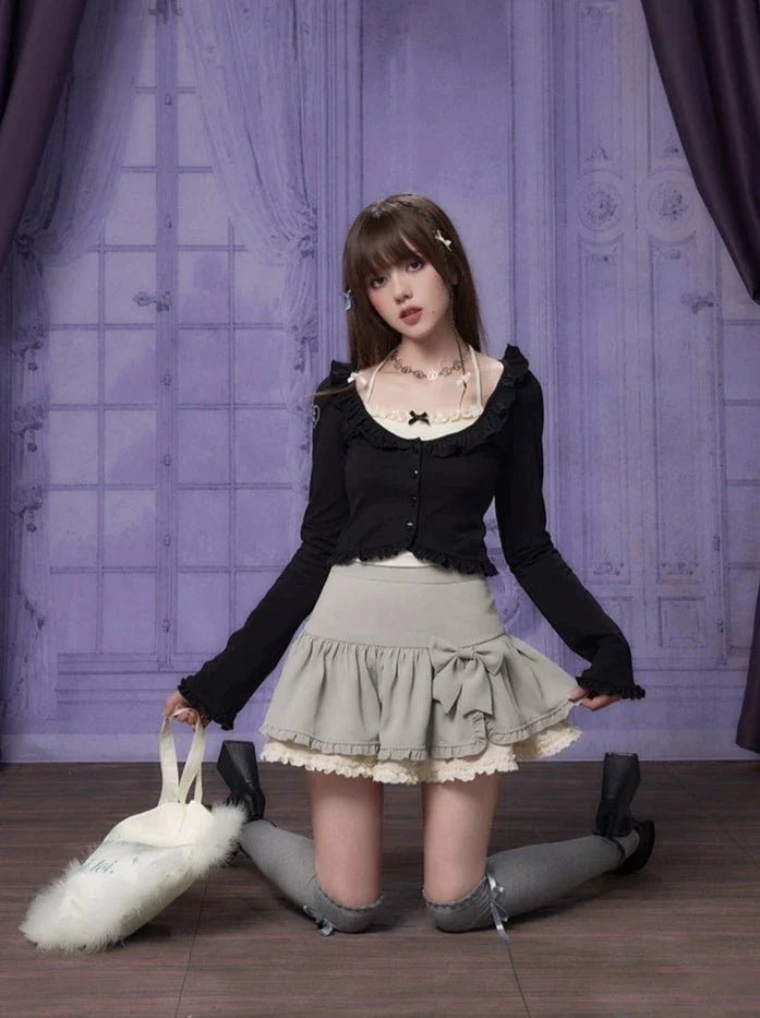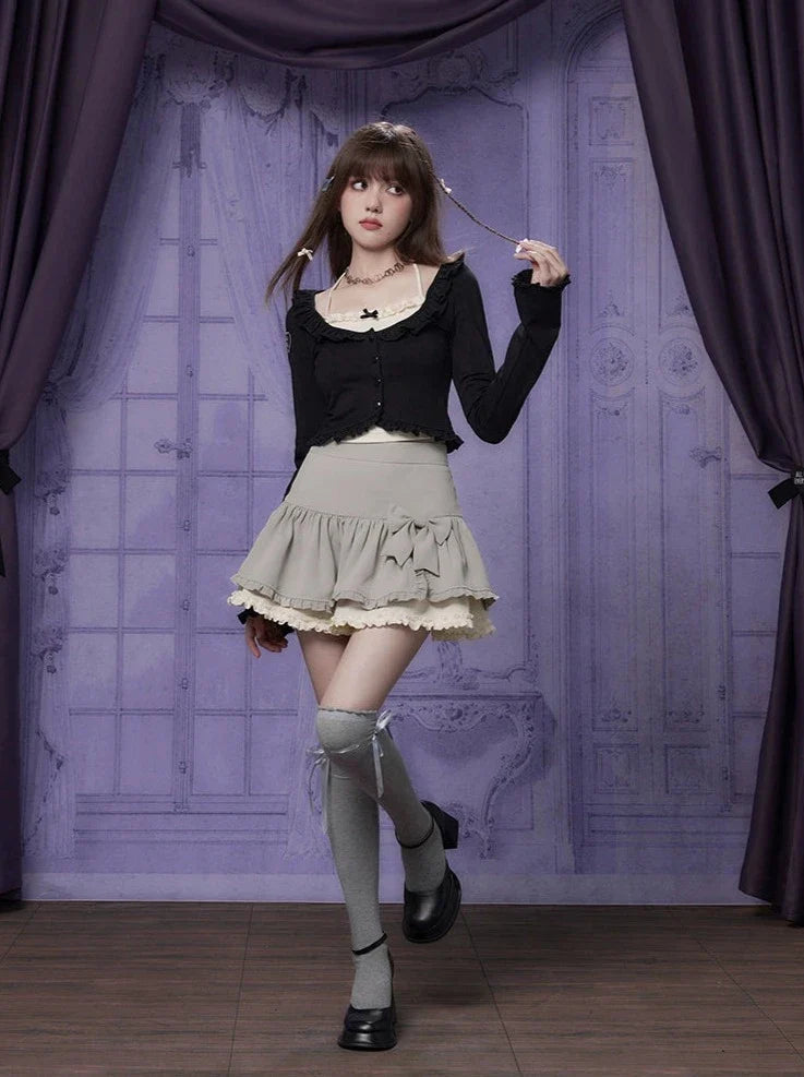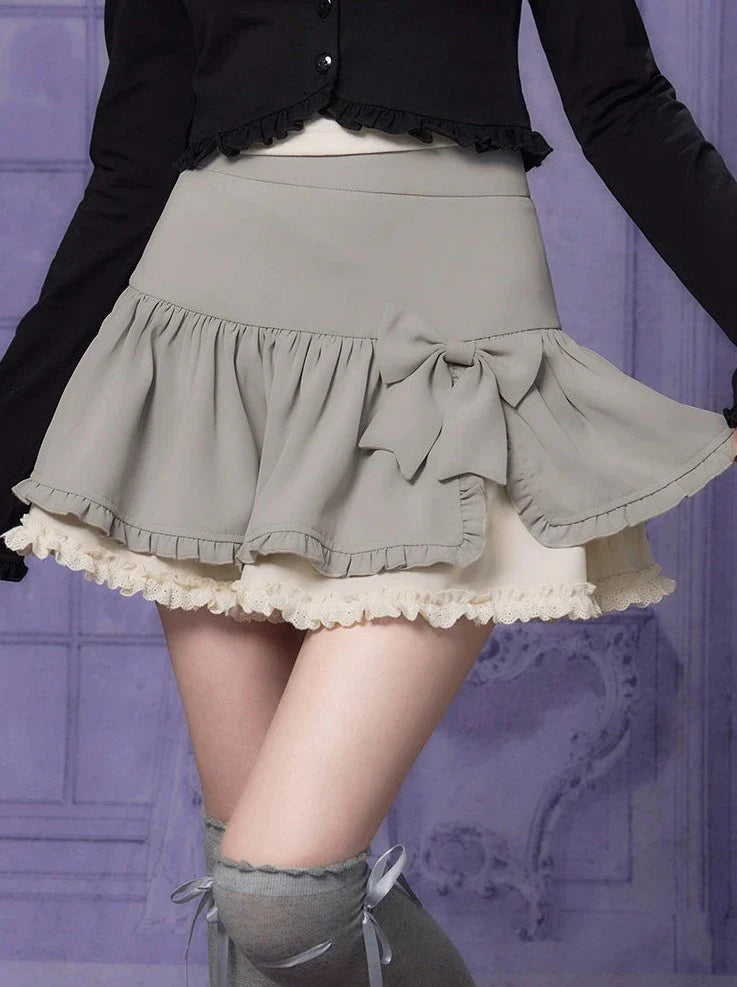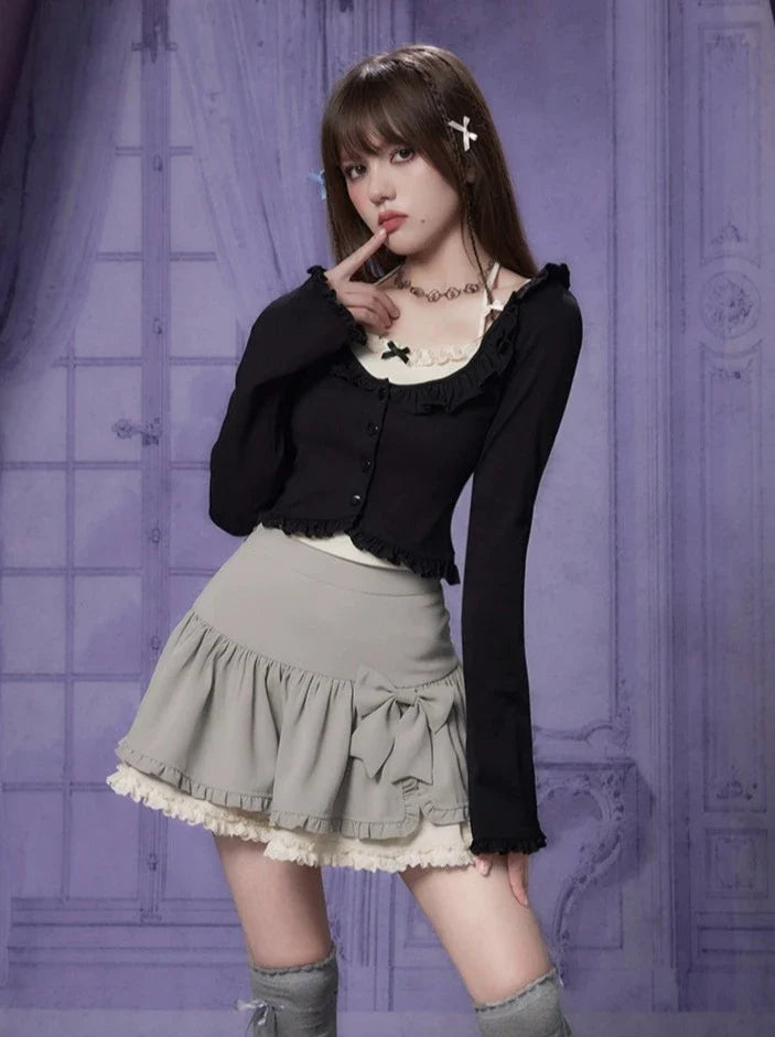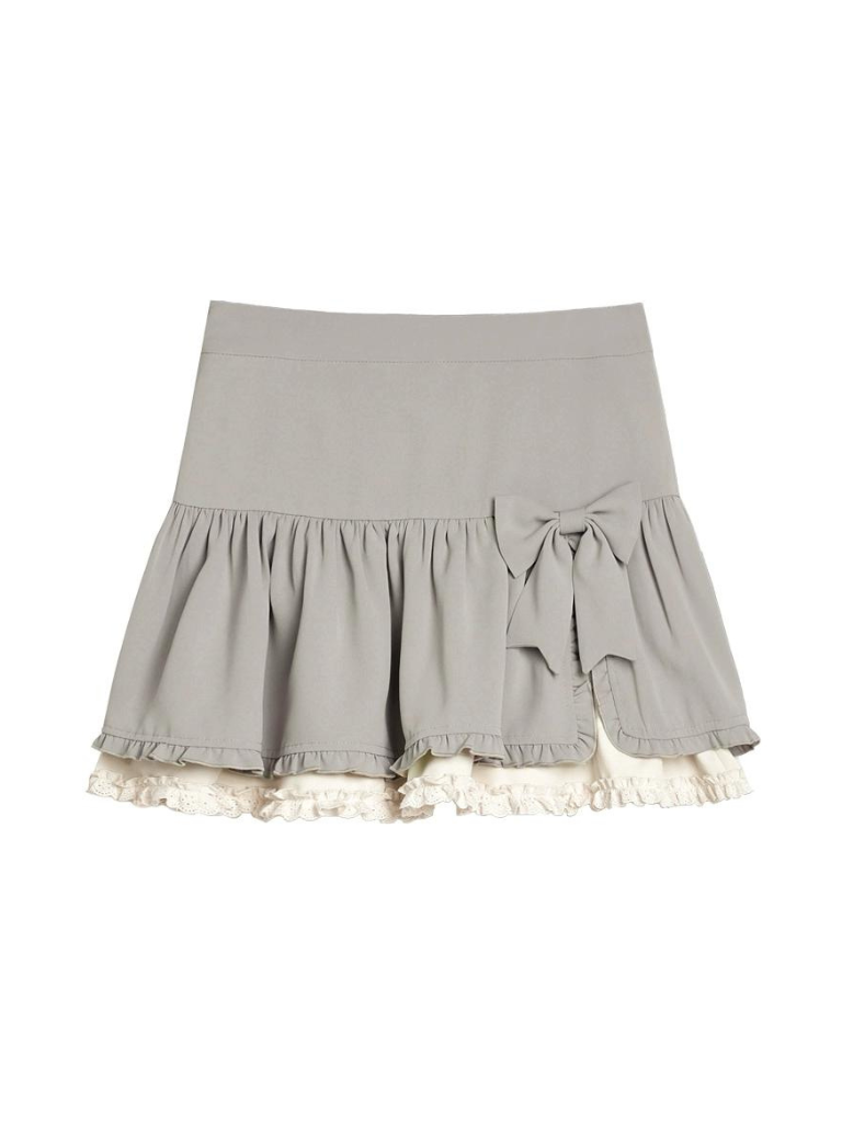 スリットラッフルリボンスカートで、ワードローブにキュートなアクセントをプラス。繊細なラッフルデザインとチャーミングなリボンディテールが特徴のスカートです。どんなシーンにもぴったりのこのスカートは、どんな装いもワンランクアップさせ、さりげなく愛らしさを演出してくれます。