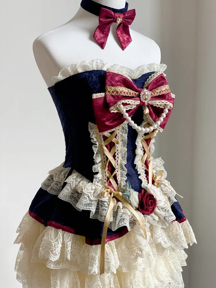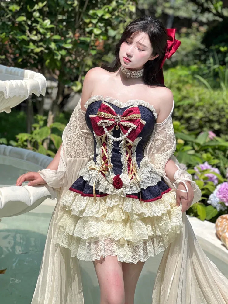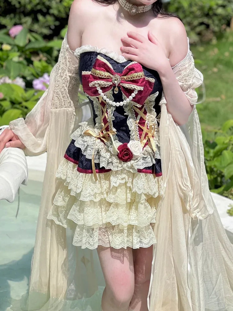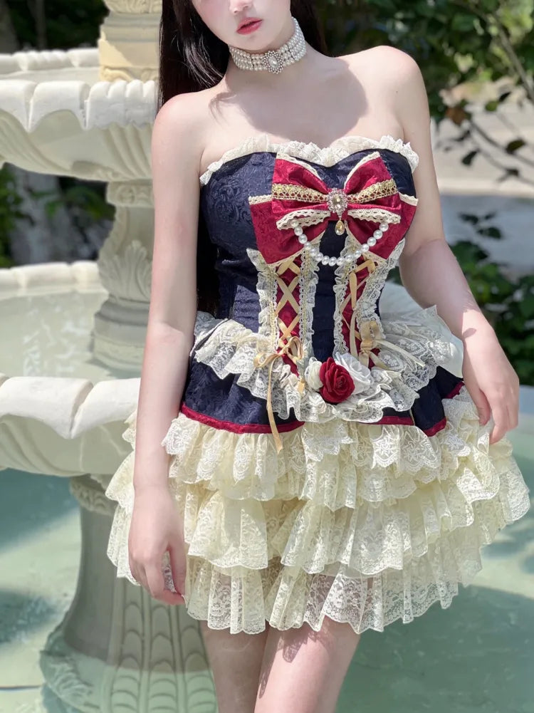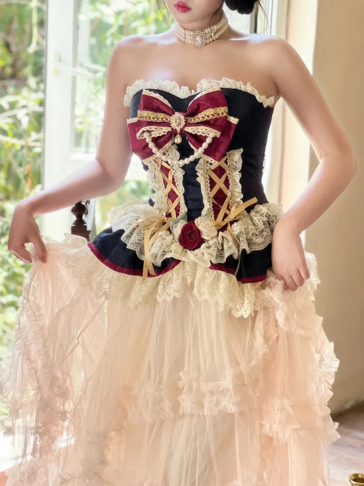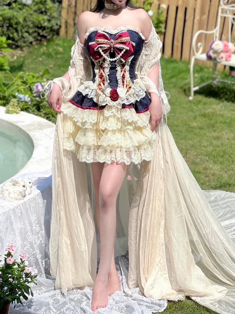 白雪姫ストラップレスプリンセスコルセットトップ/クリーミーレースブルマー