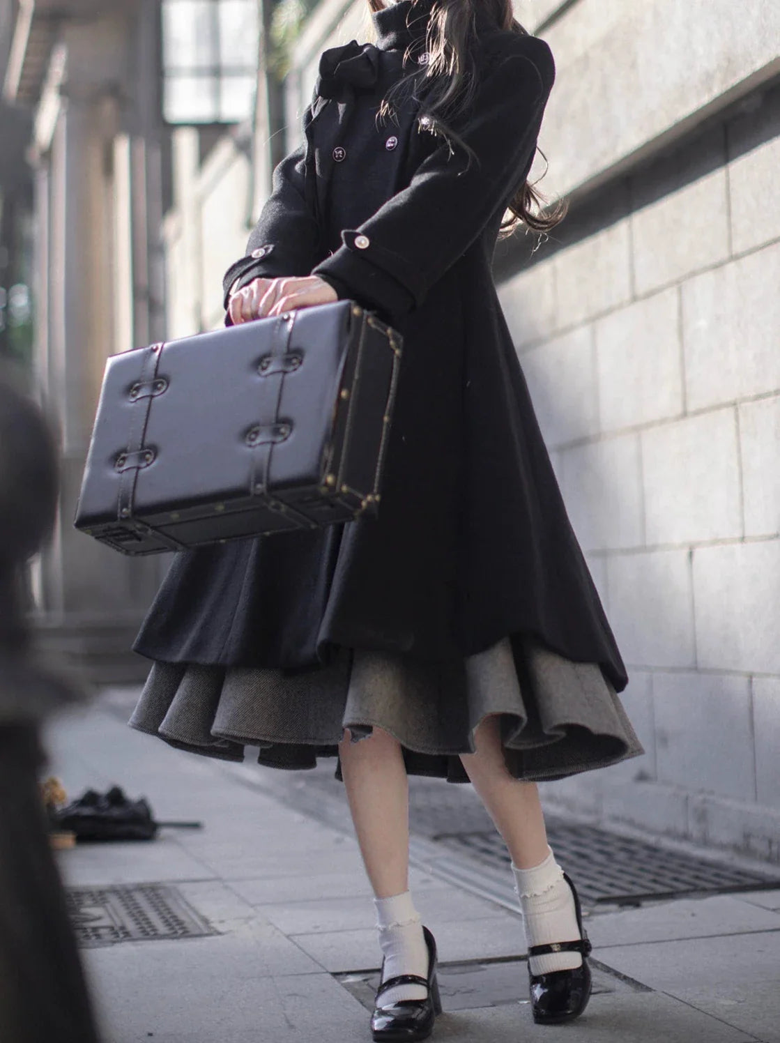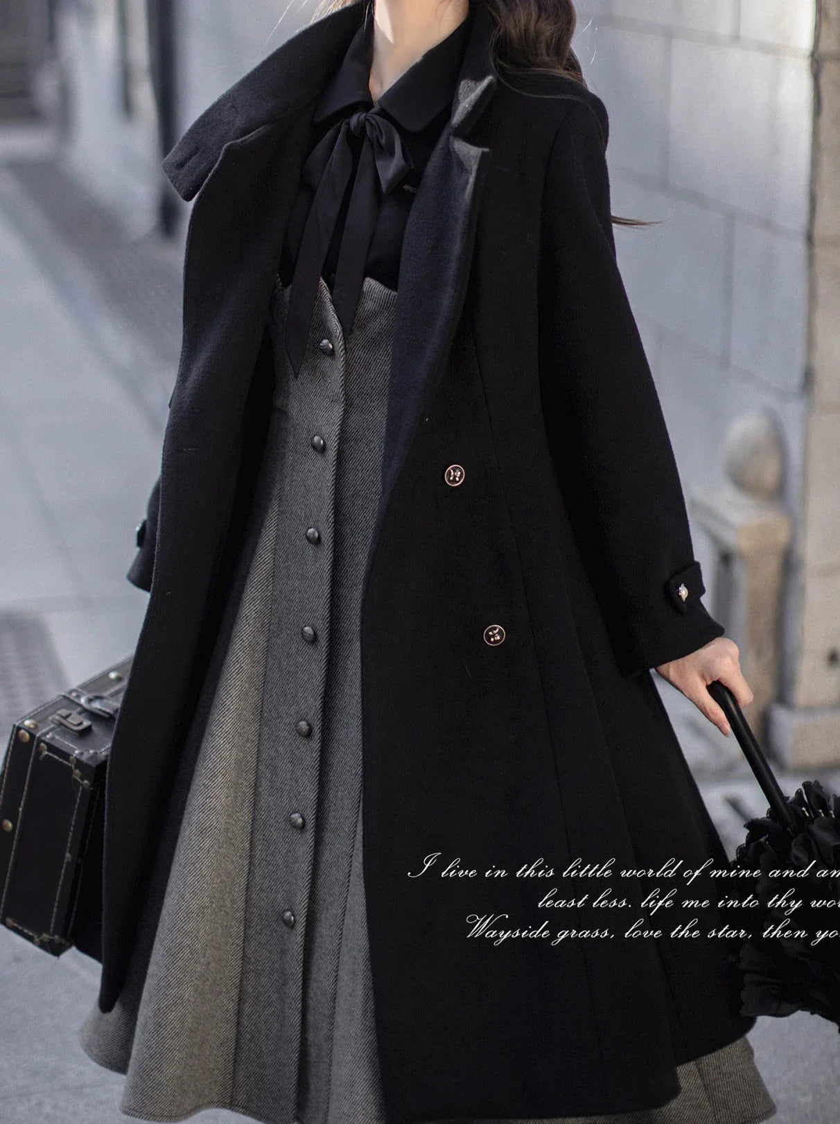 ダブルブレストのデザインとチャーミングなリボンディテールが特徴のエレガントなコートは、ワードローブにヴィンテージ感をプラス。柔らかなウール素材で仕立てられており、冬の間ずっと暖かくスタイリッシュに過ごせます。このコートで、あなたの内なるキュートさを堪能してください。
