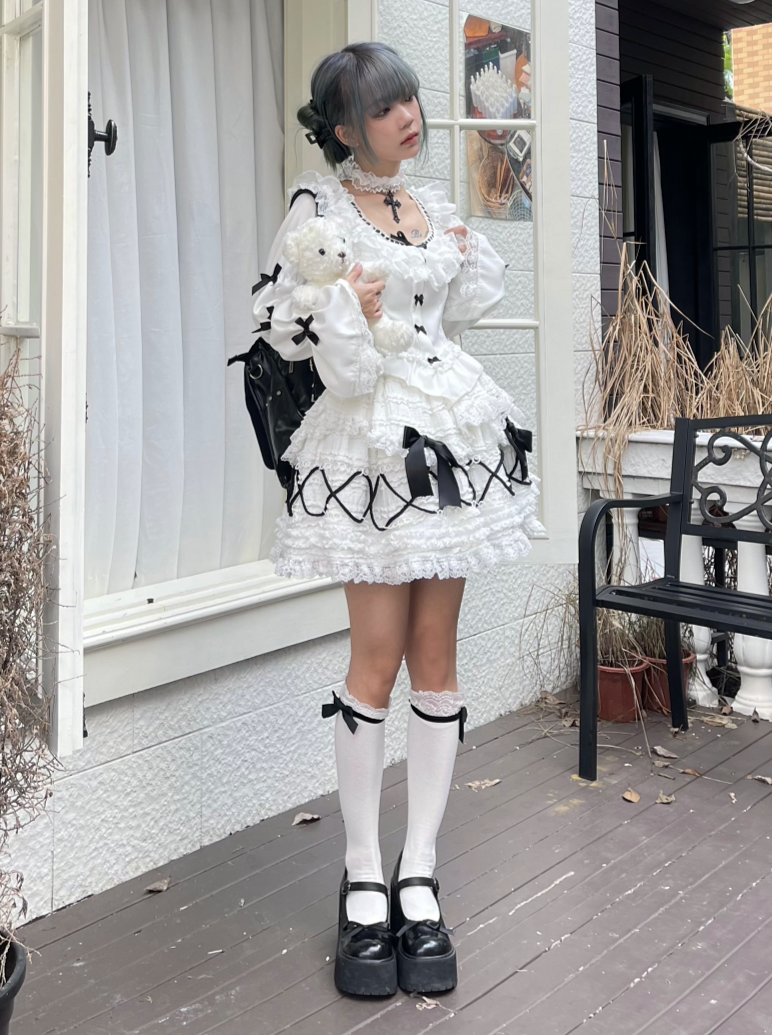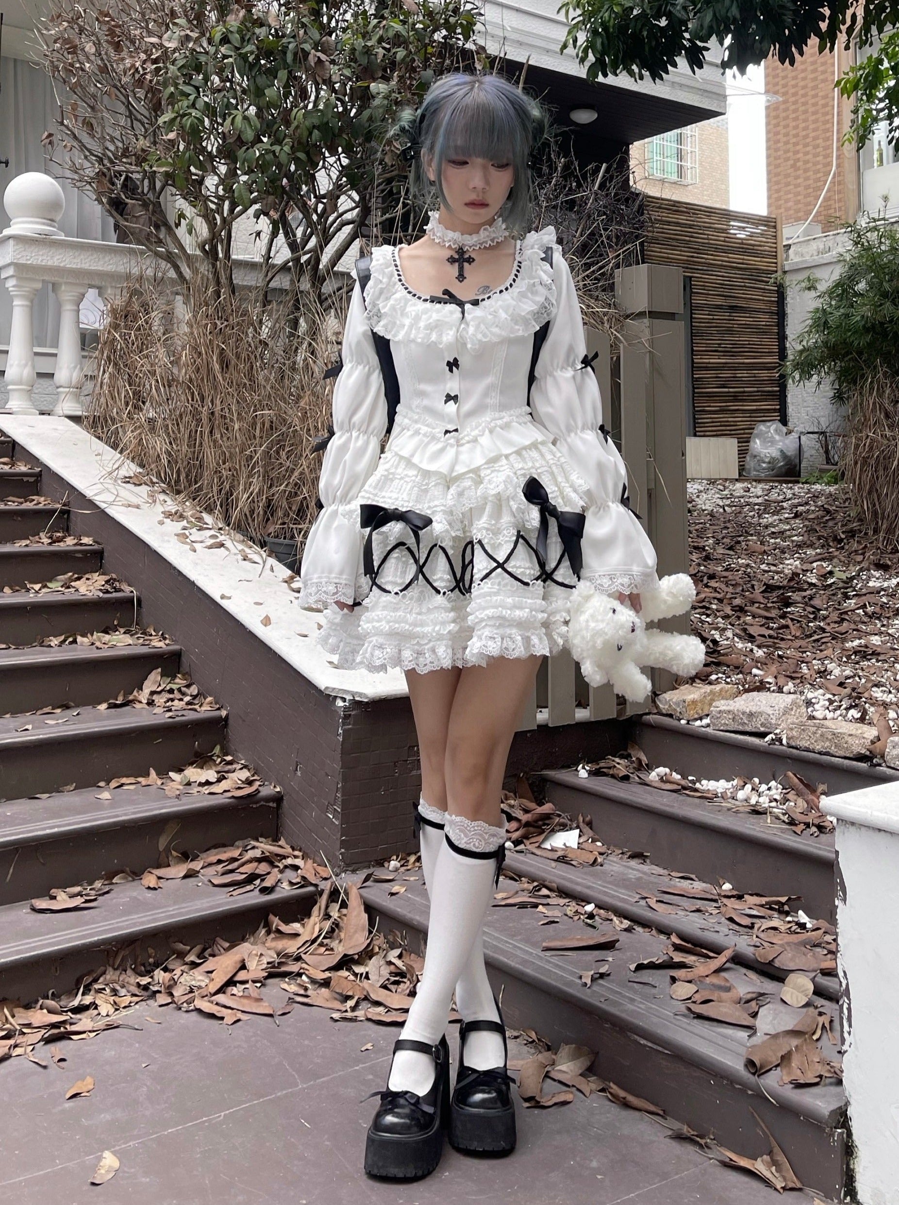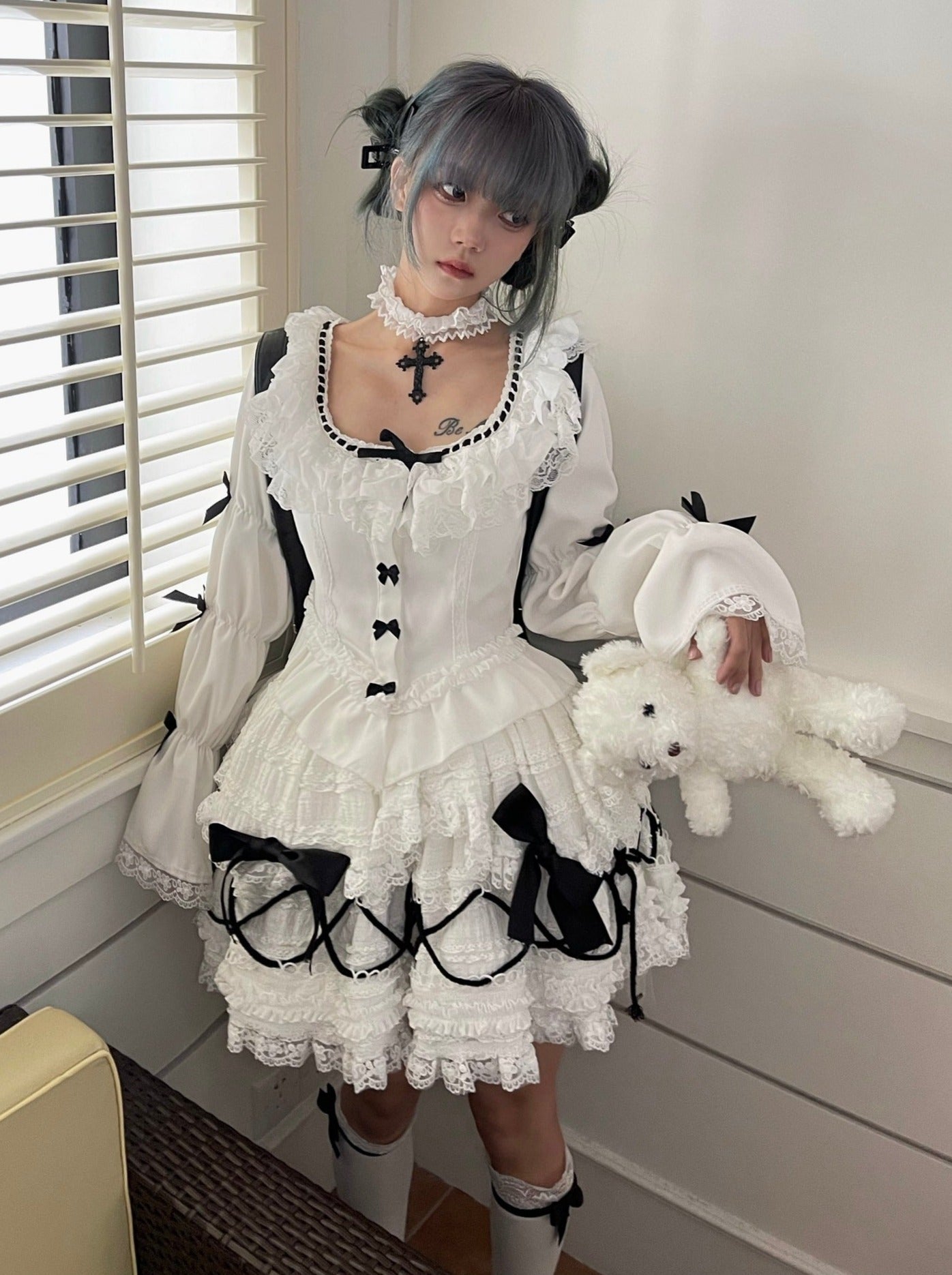 黒と白のオールドスクールロリータファッションドレス蝶結びロリータJSKセット