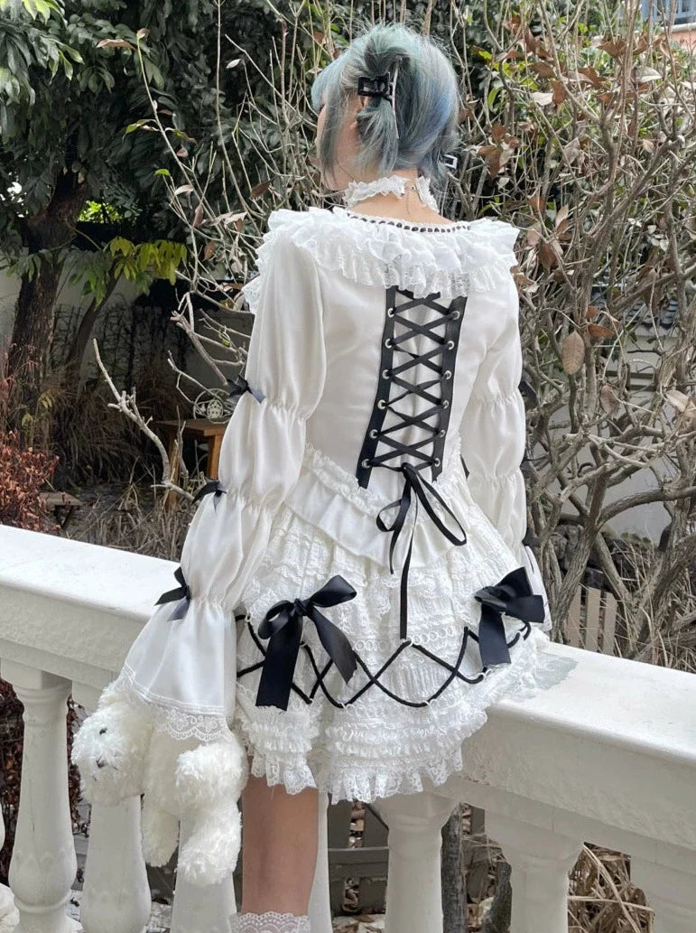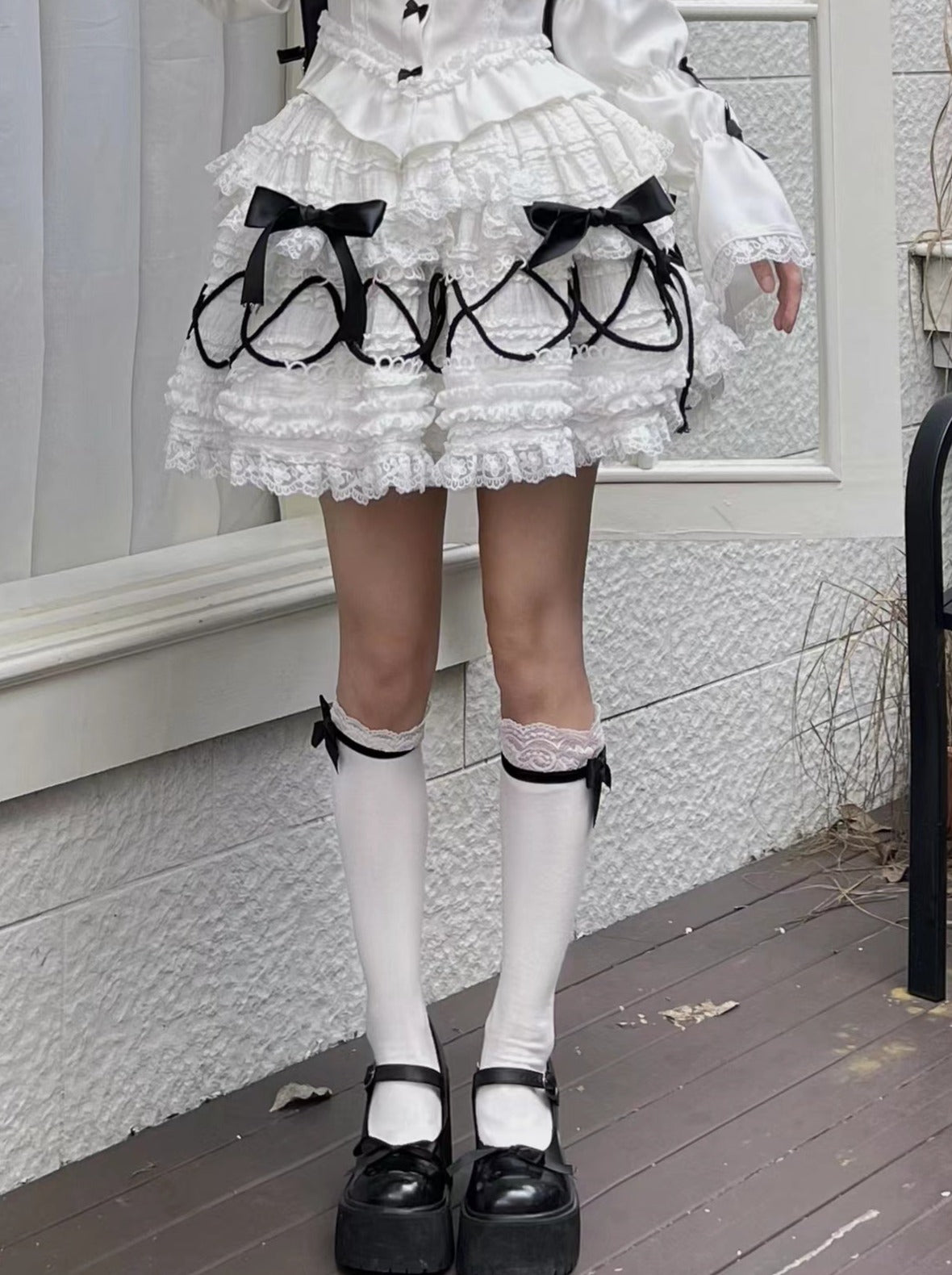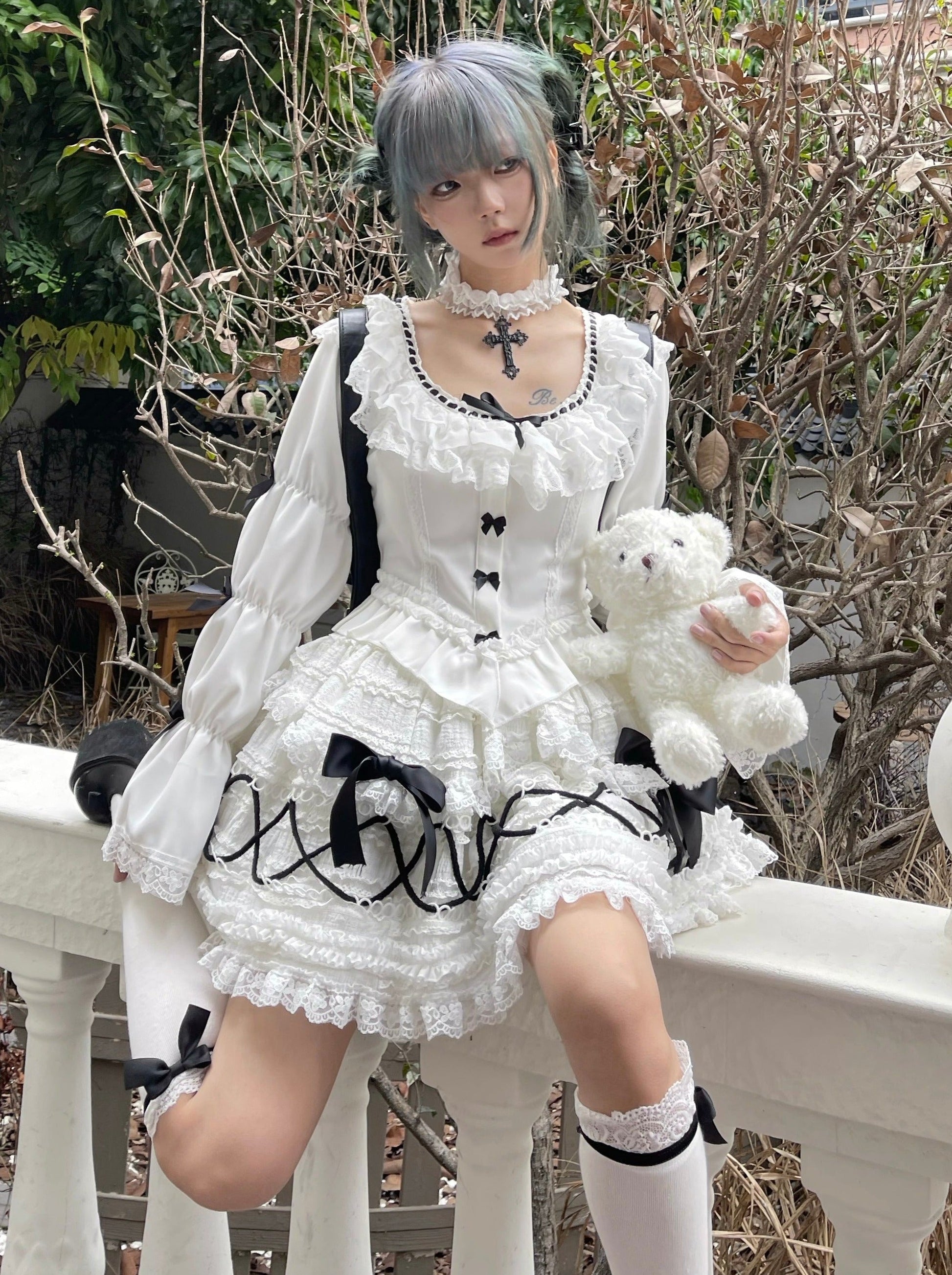 黒と白のオールドスクールロリータファッションドレス蝶結びロリータJSKセット