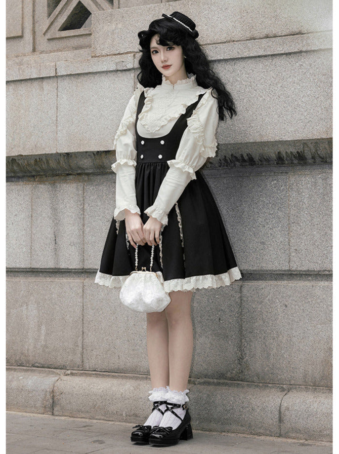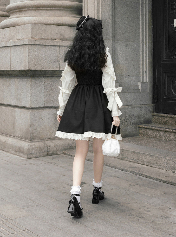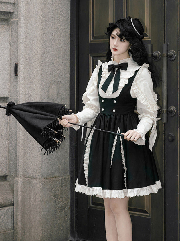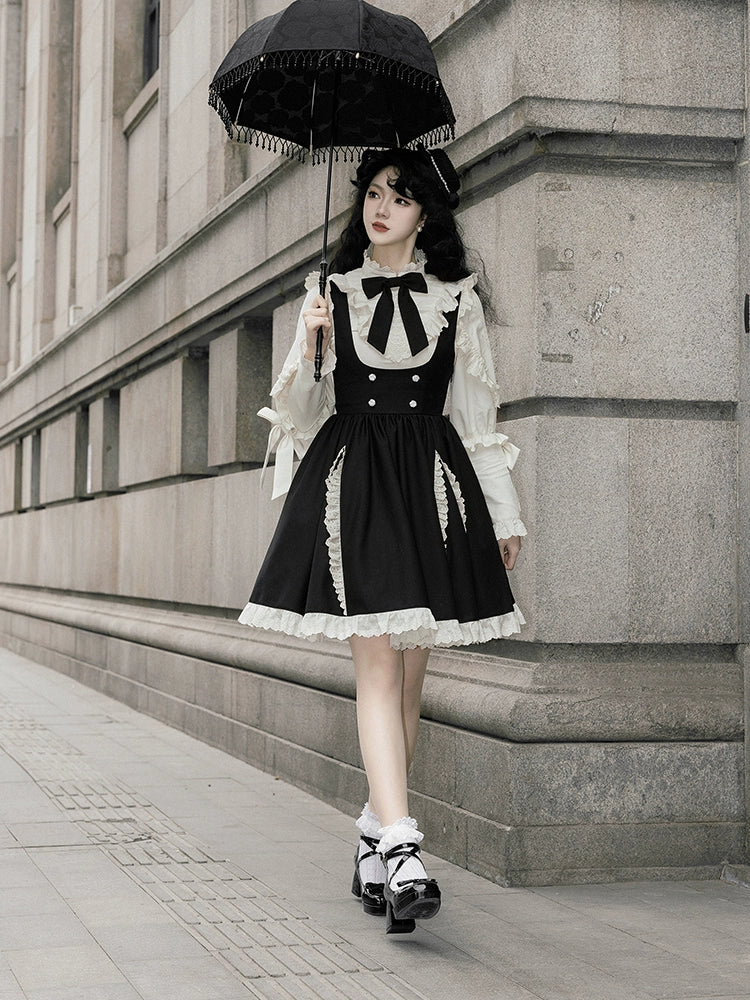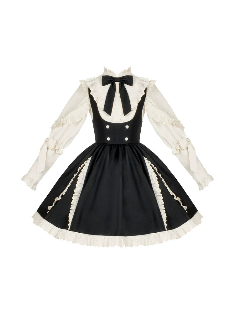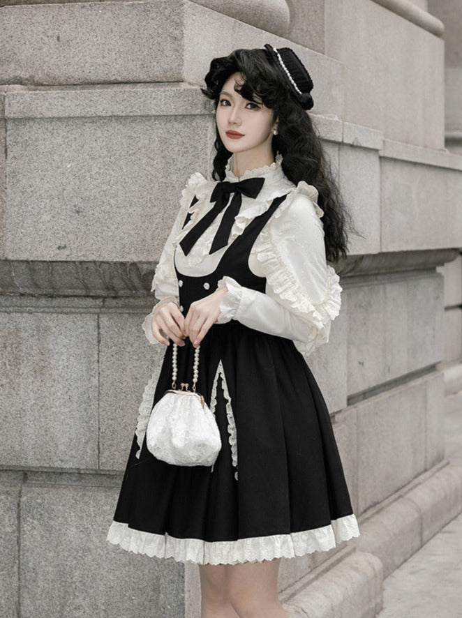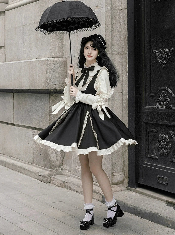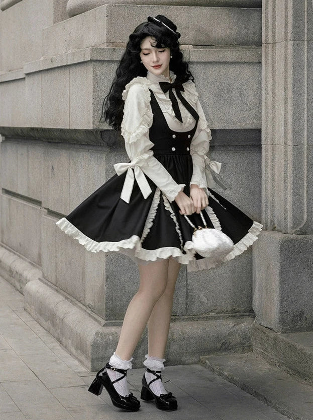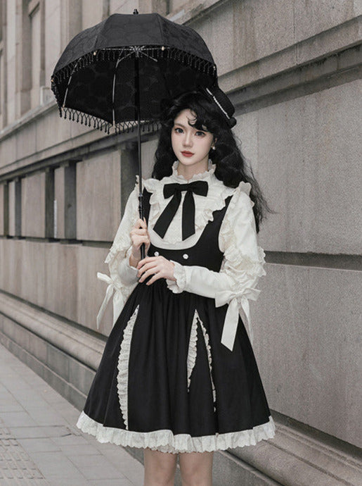 黒と白のオールドスクールロリータファッションドレス蝶結びロリータJSKセット
