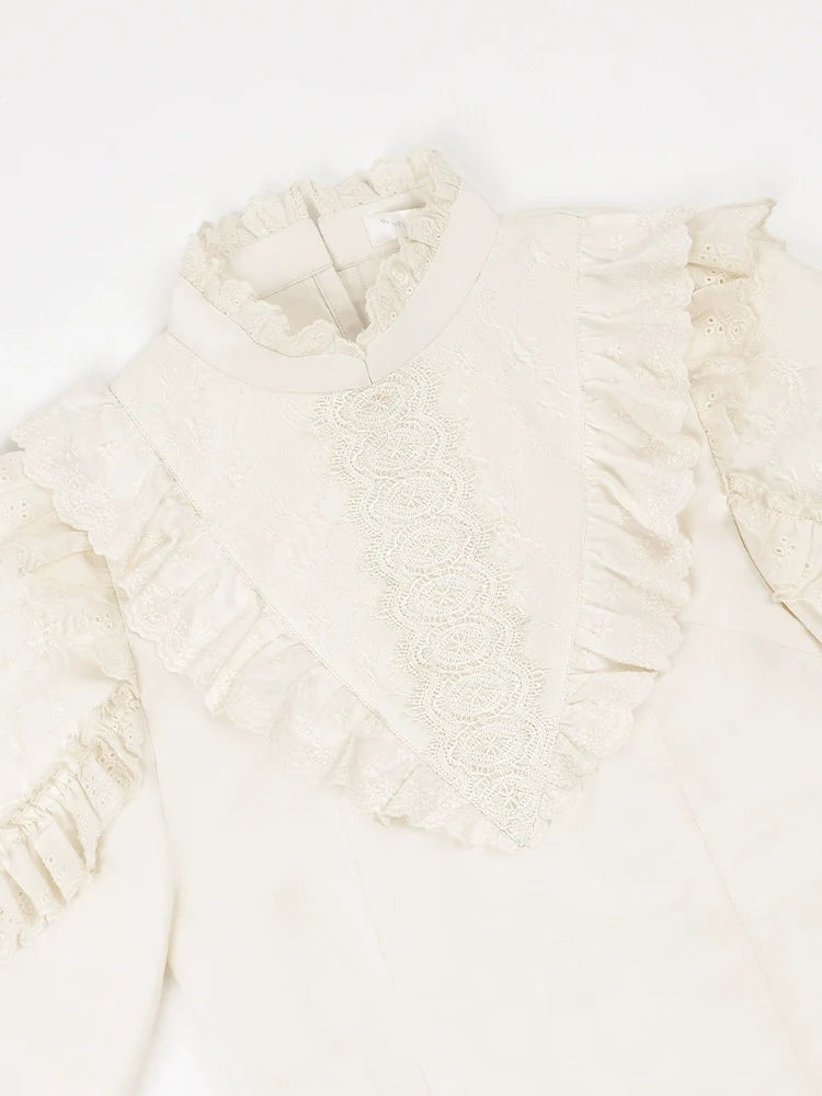 ストラップリボンフリル+スタンドシャツカラーフリルスカート