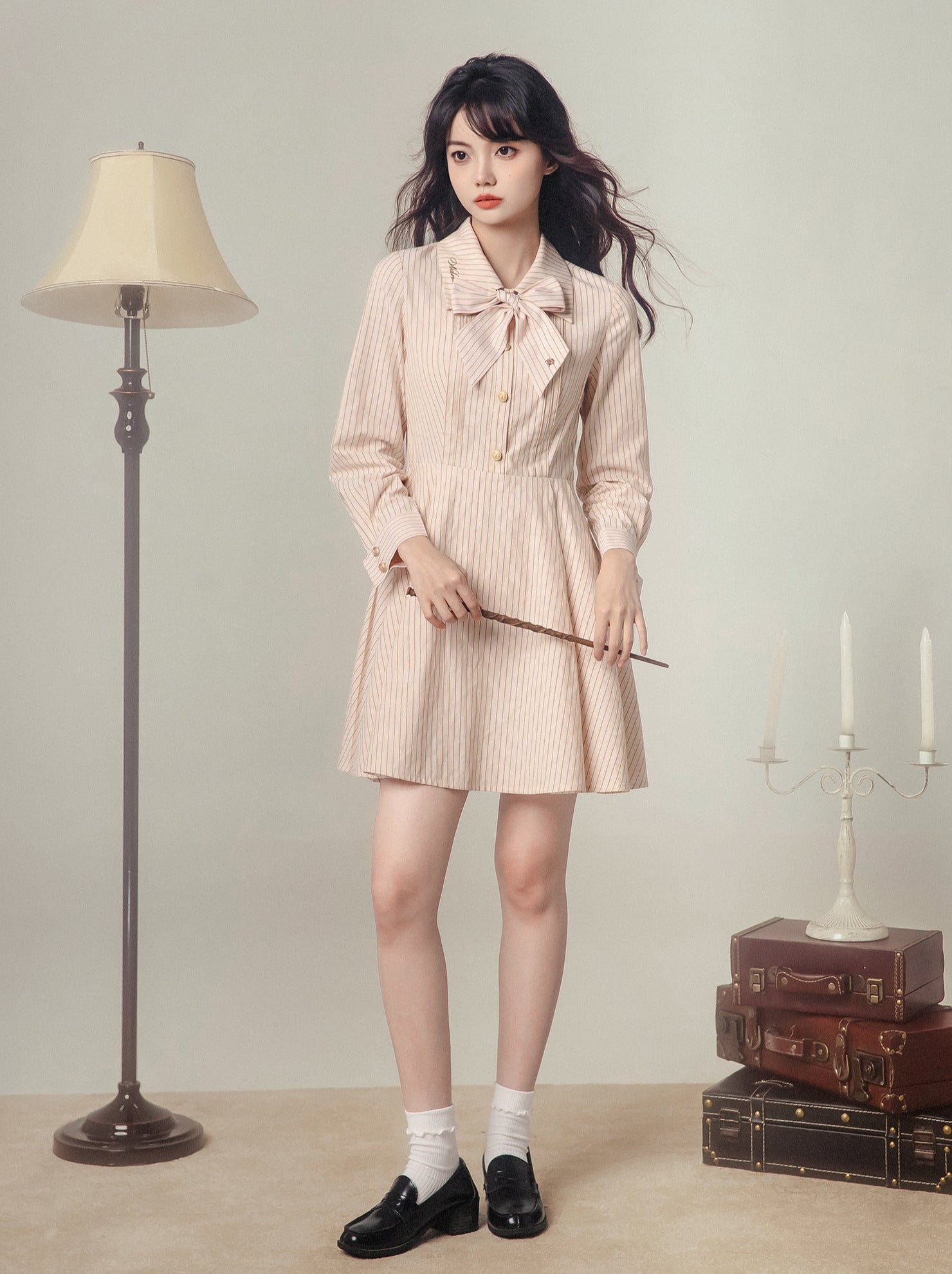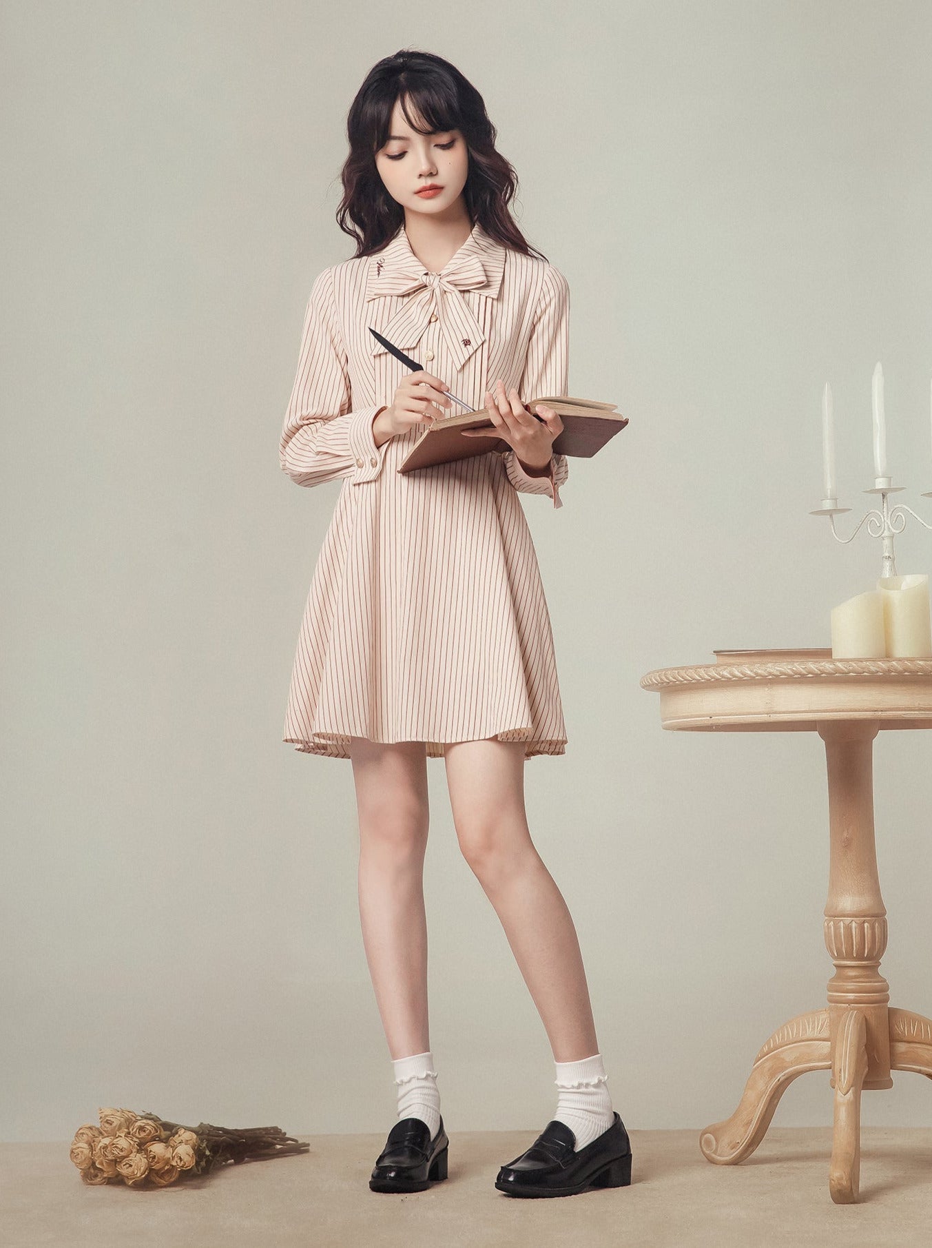 ピンクと白のオールドスクールロリータファッションドレス、蝶結びディテール、ロリータJSKセット