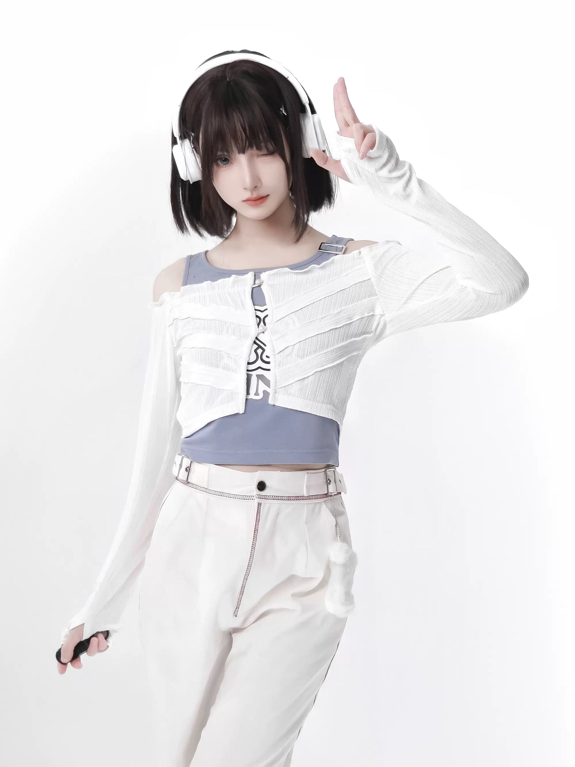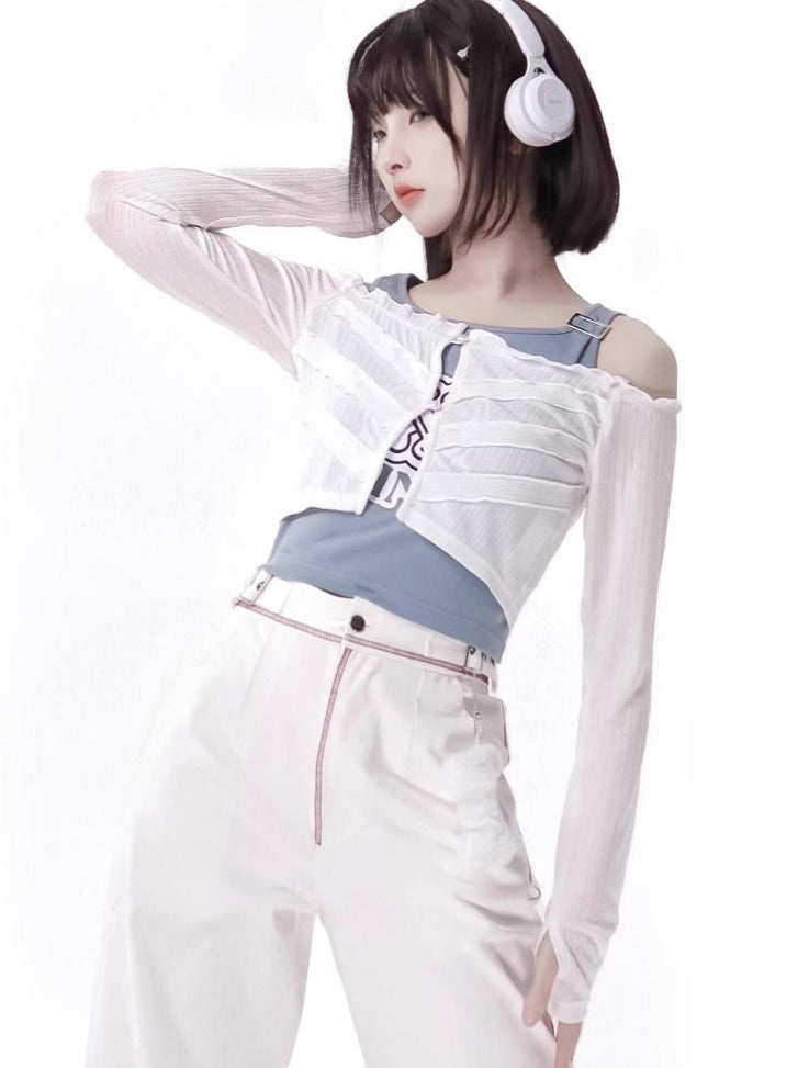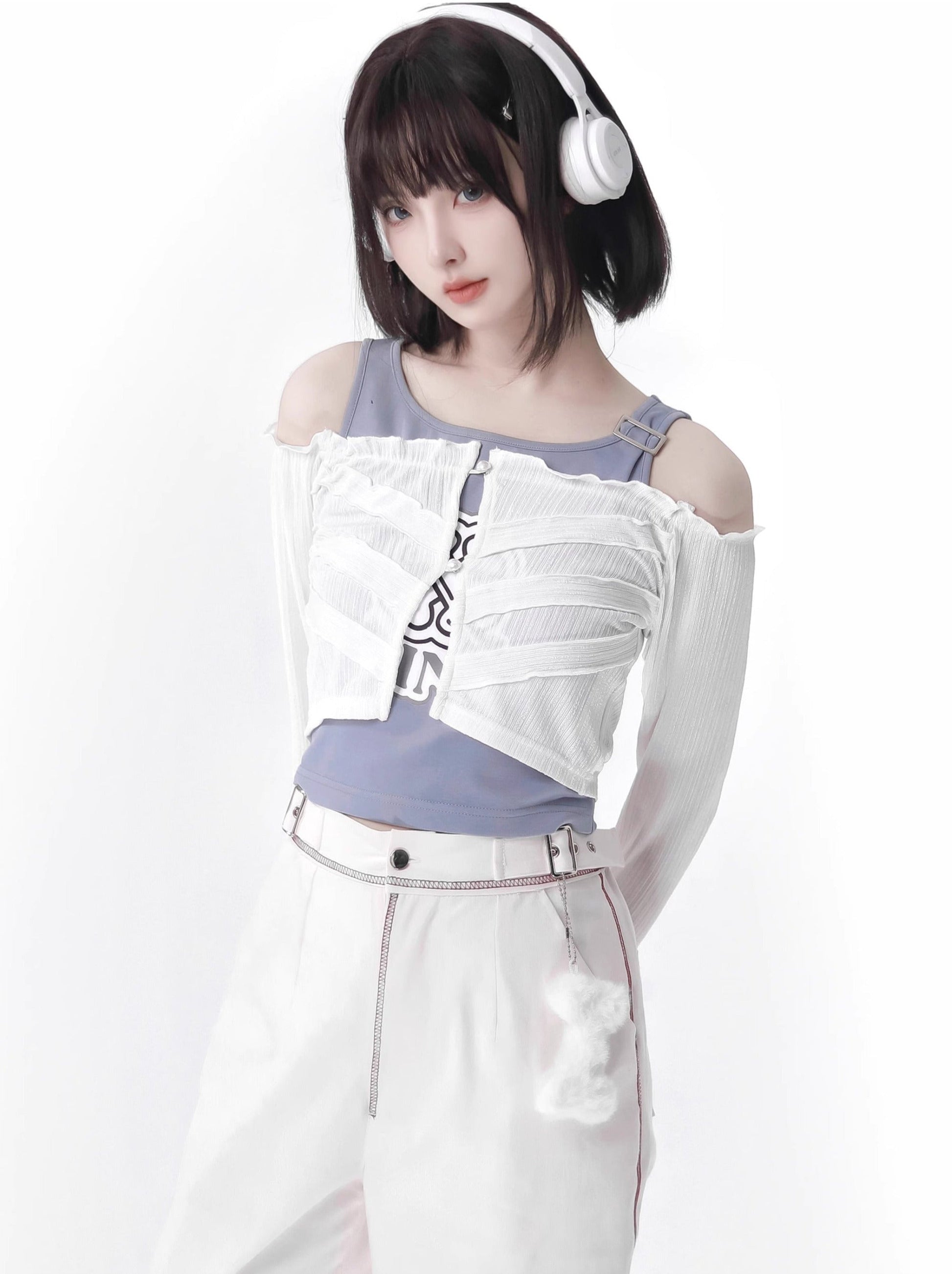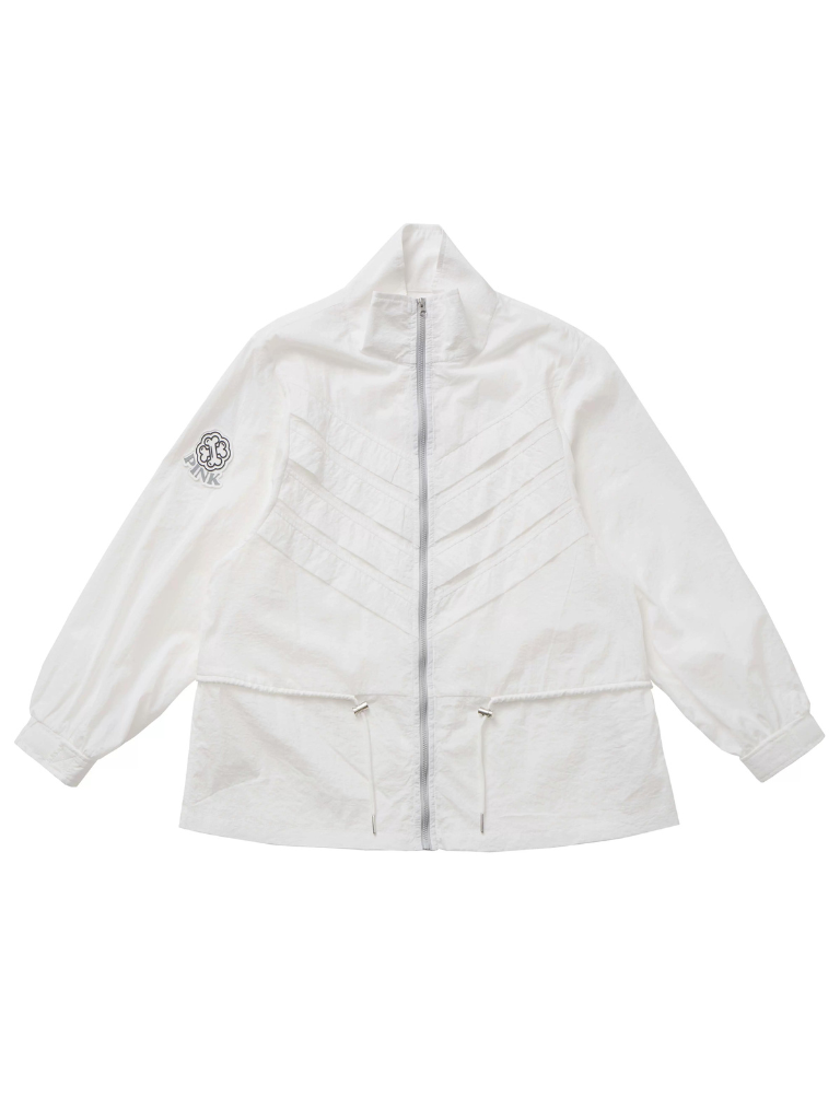 スーツカラーのスケルトンサマージャケットで、スタイリッシュに、そして安全に。爽やかなブルーとホワイトのデザインがあなたの一日を明るく彩り、日焼け止め素材が日差しからあなたを守ります。このファッショナブルなジャケットで、クールでキュートな装いを演出しましょう。