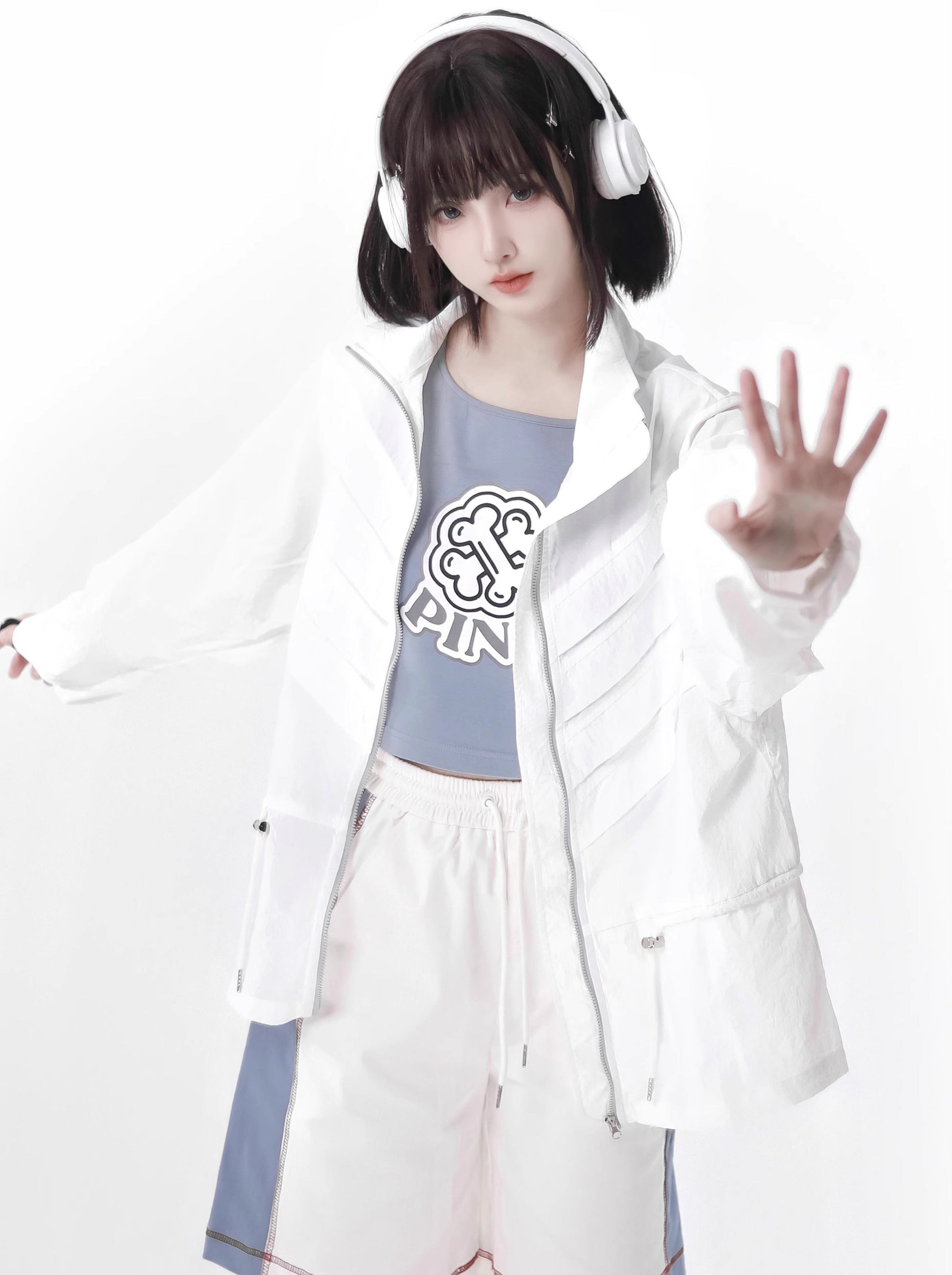 スーツカラースケルトンサマージャケットブルーホワイトフレッシュインベージョン日焼け止め