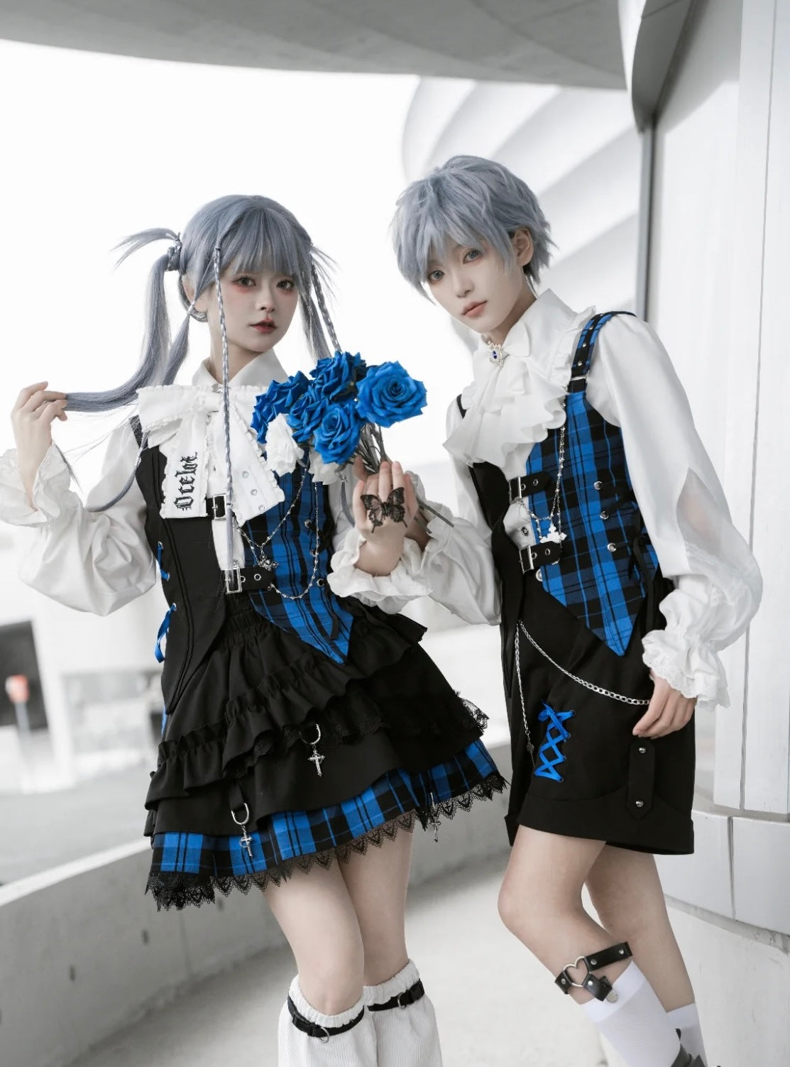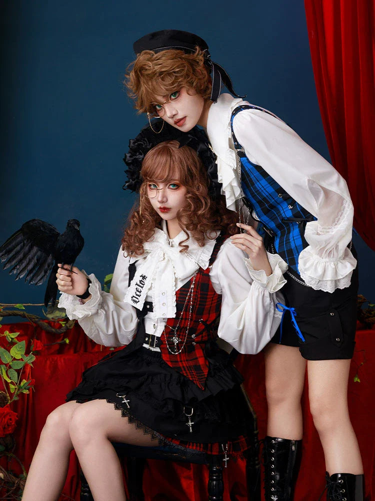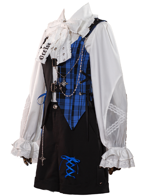 チェックのベスト、パンツ、スカート、シャツ、そしてプリンスらしいディテールが揃った、魅力的なスーツセット。洗練された装いを演出するのにぴったりで、可愛らしさも兼ね備えています。