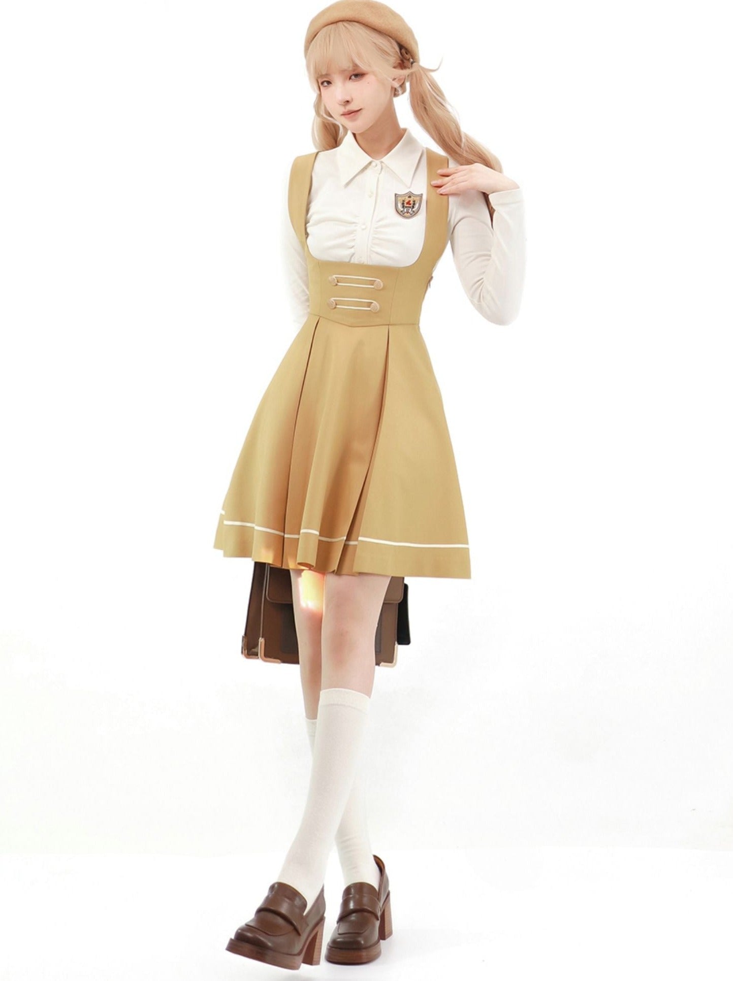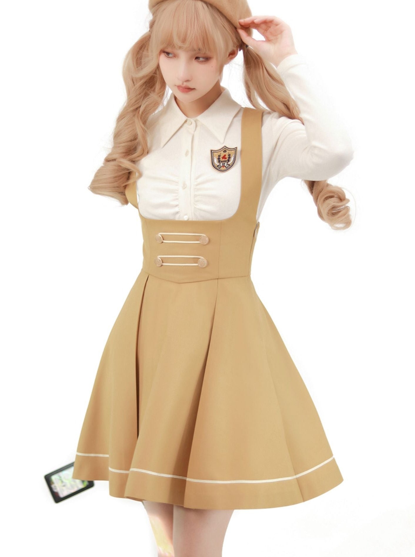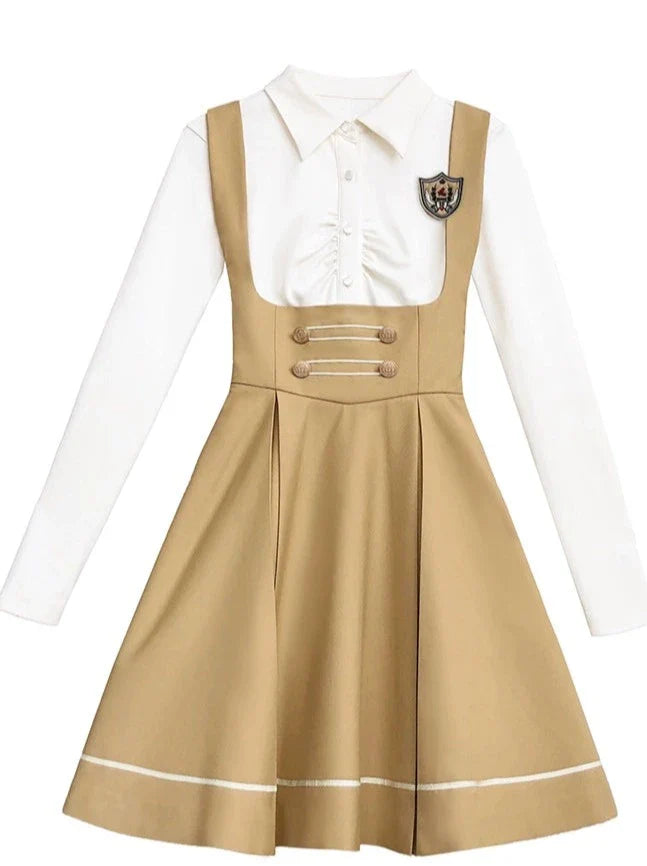 サスペンダーバッジスカートカレッジ+ブラウス
