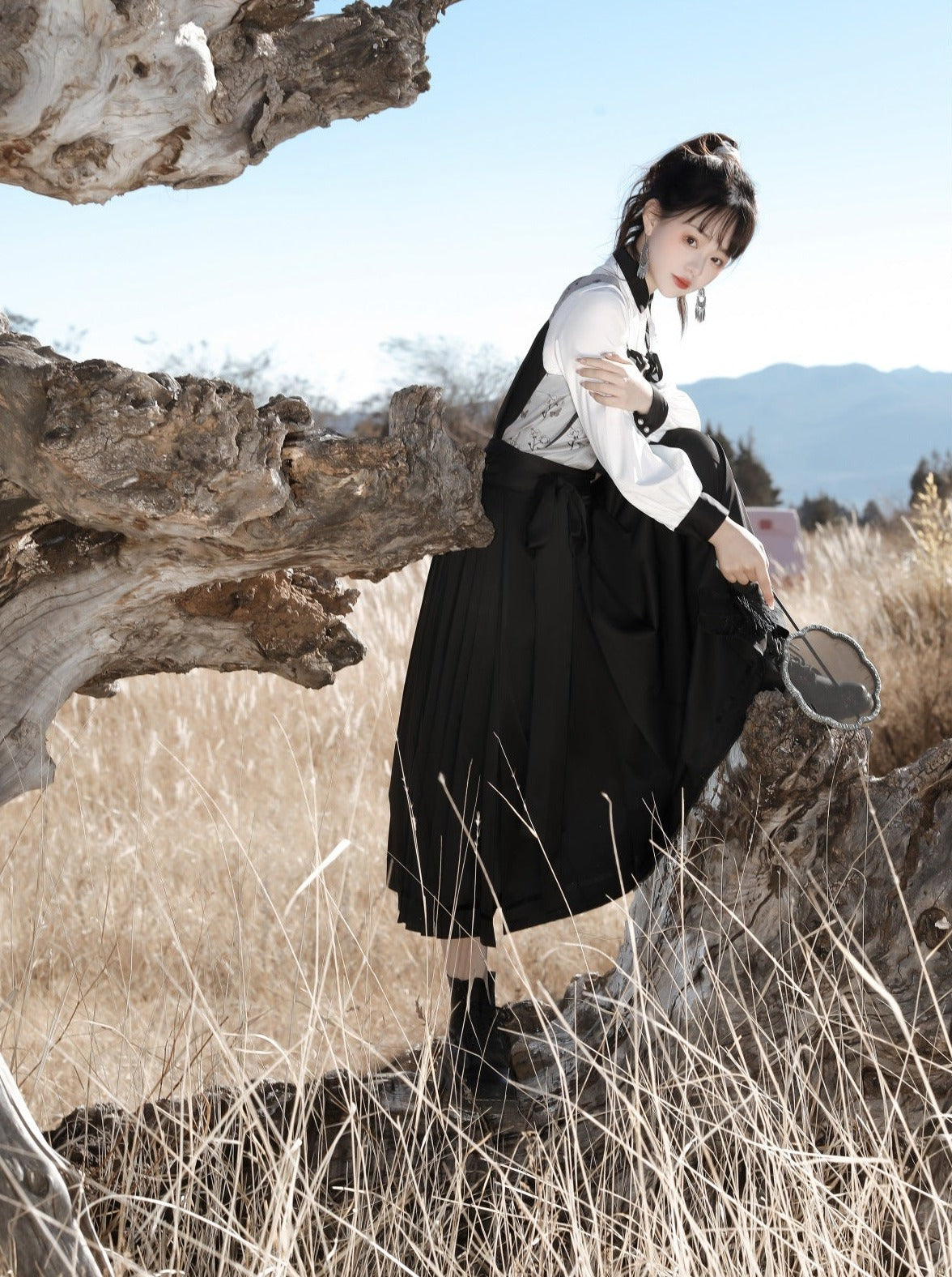 サスペンダーベスト チャイナ + ブラウス フラワー バイカラー アシンメトリー ダーク