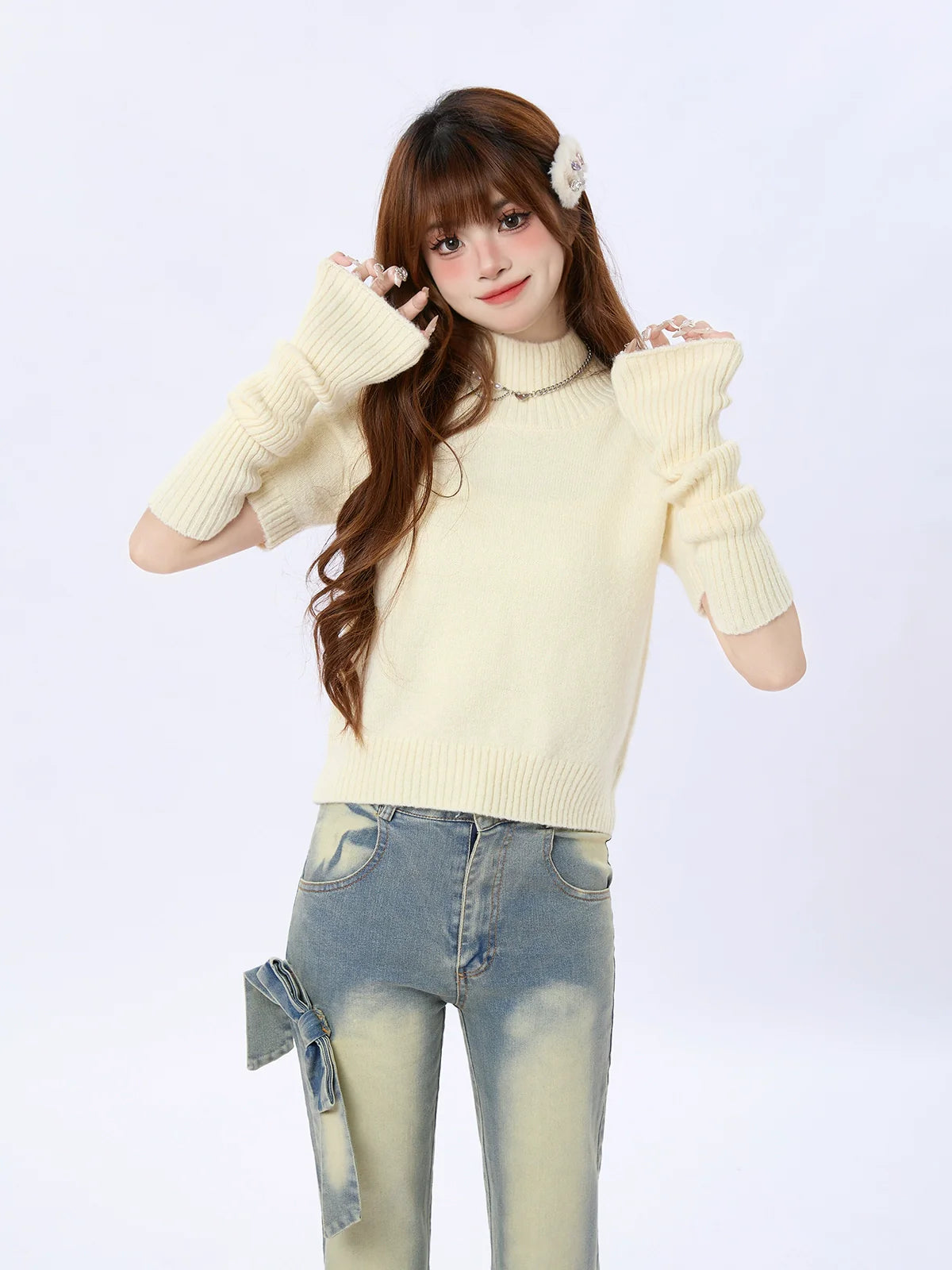 この愛らしいセーターニットタートルネックは、どんなワードローブにもぴったり。ユニークなツーピースデザインが汎用性と保温性を高め、柔らかなニット素材が快適な着心地を実現。このキュートなアイテムで、スタイリッシュで快適な着心地をキープしましょう。