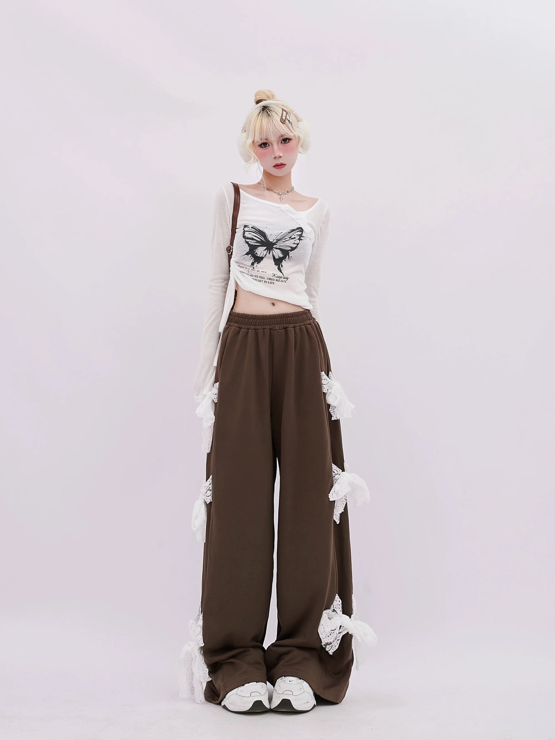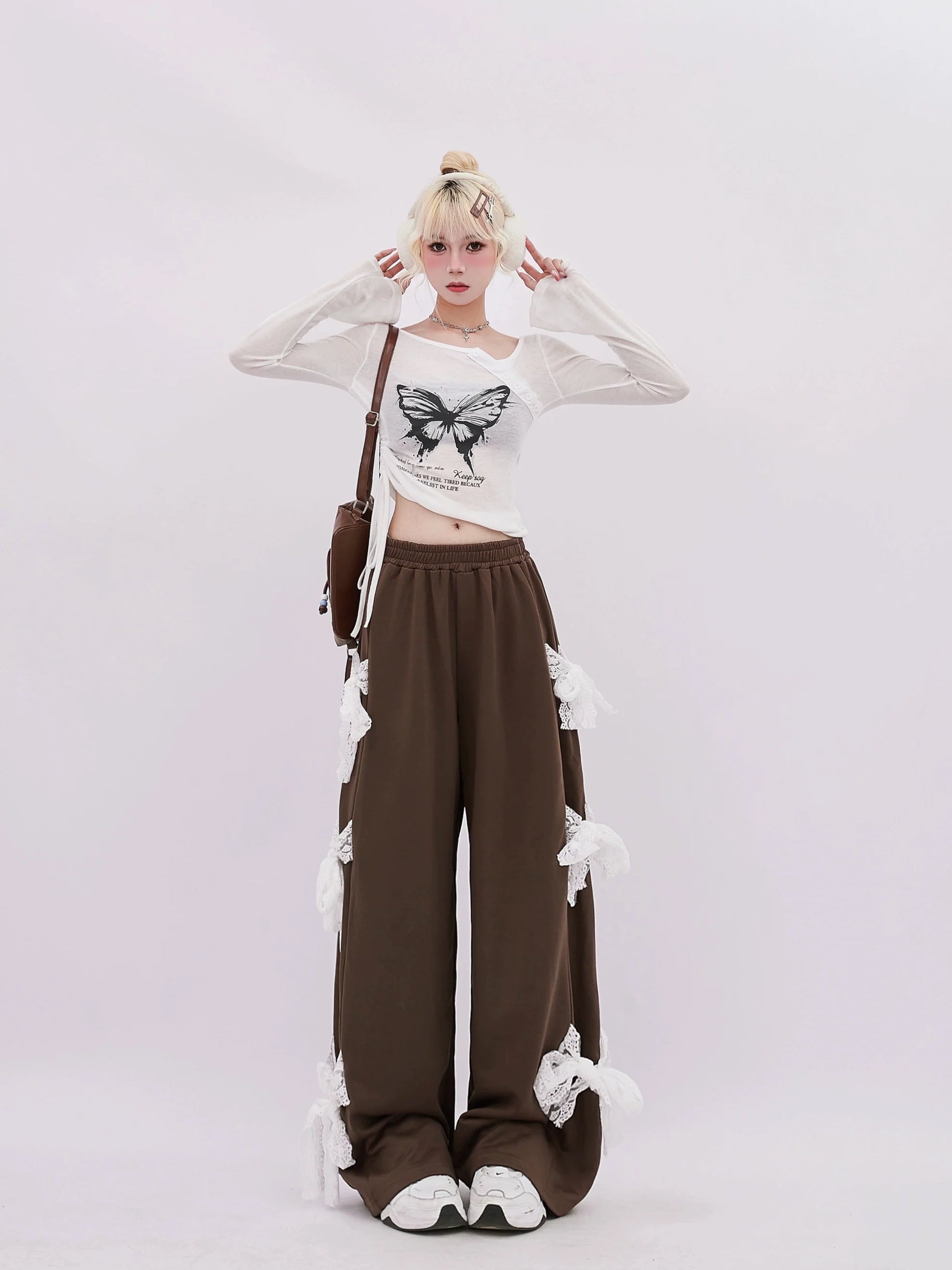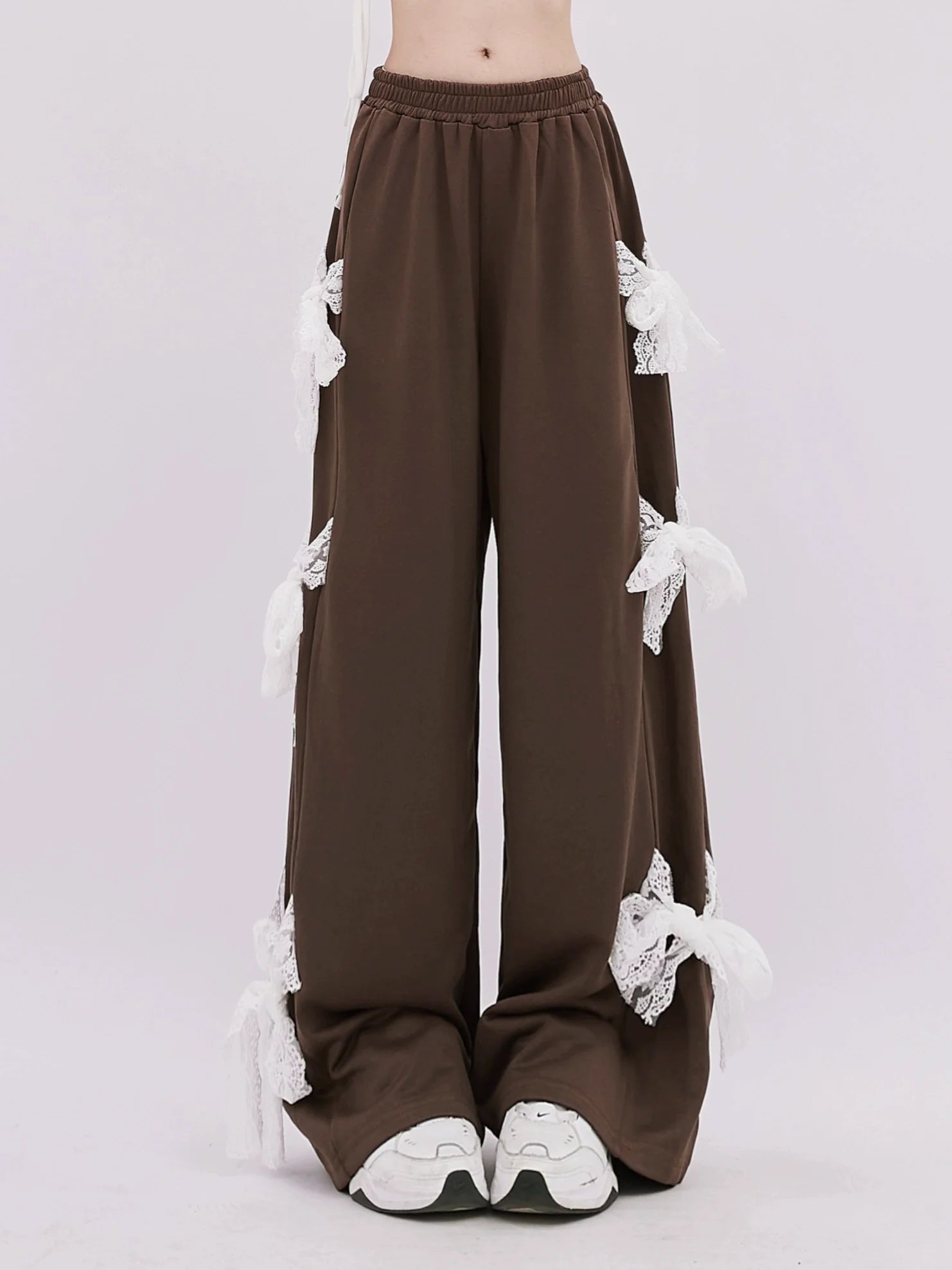 スウェットパンツ ボウ ガーリー サイド ワイド