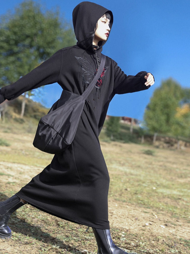 スウェットシャツ ルーズフード付きパーカー ダークモード