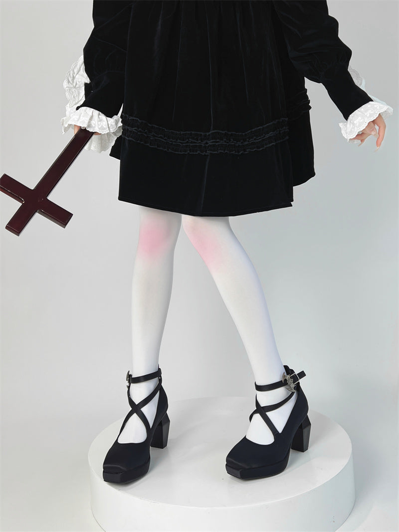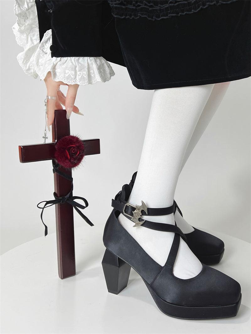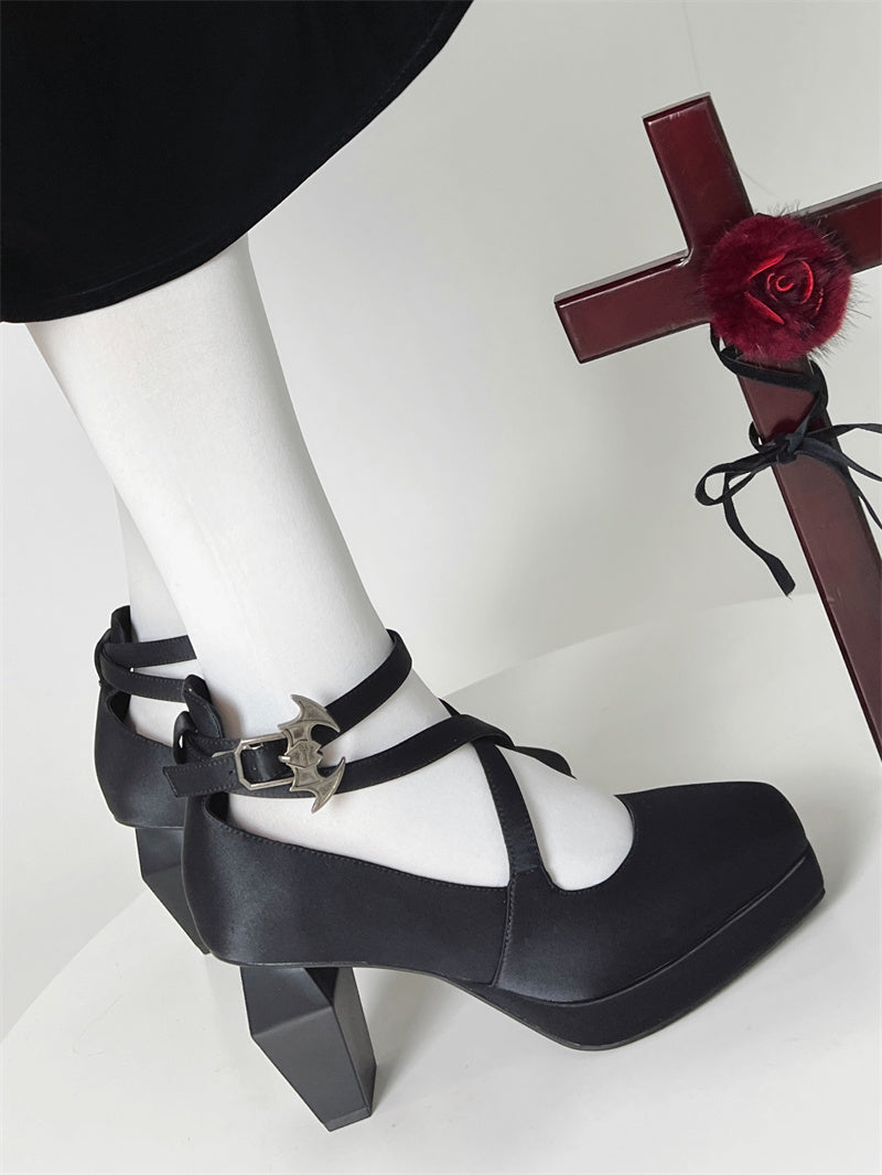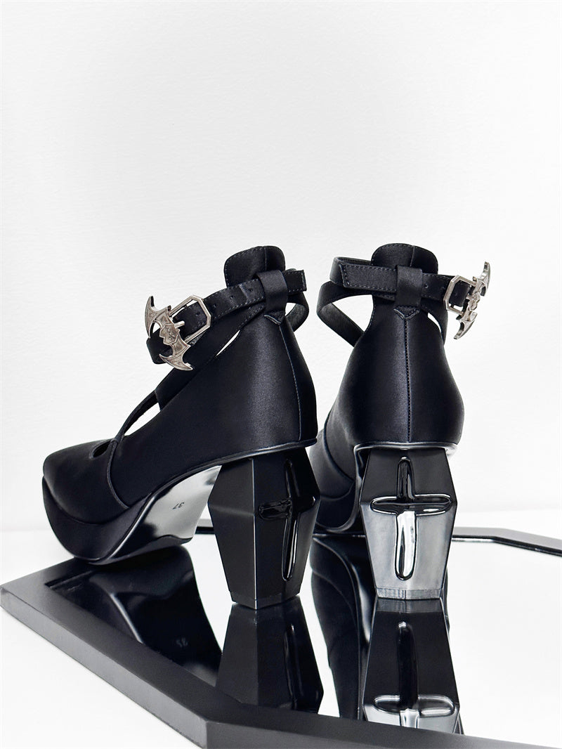 つま先ストラップゴスハイエレガントスクエアテレサシルク祈祷ヒール