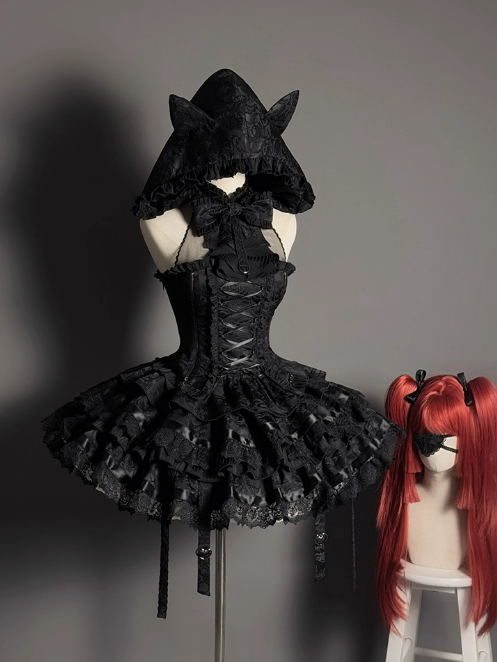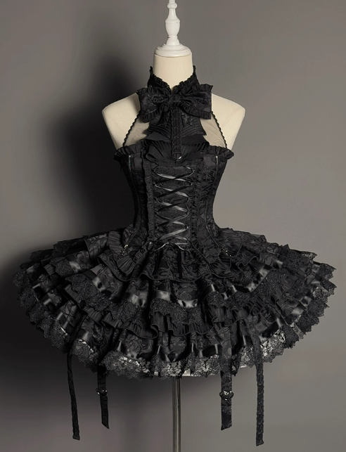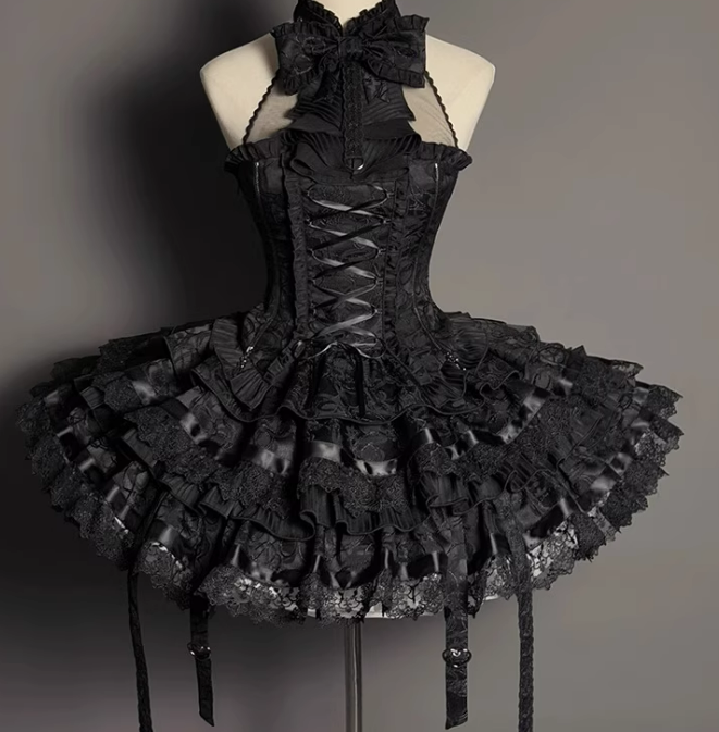 黒と白のオールドスクールロリータファッションドレス蝶結びロリータJSKセット