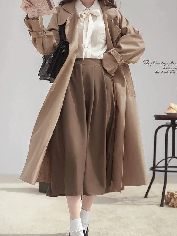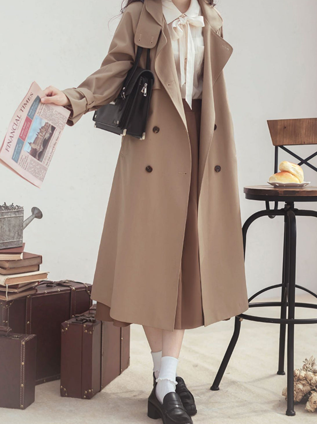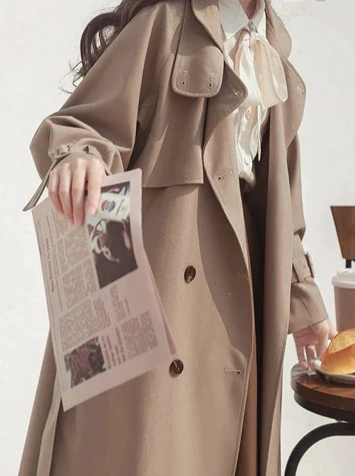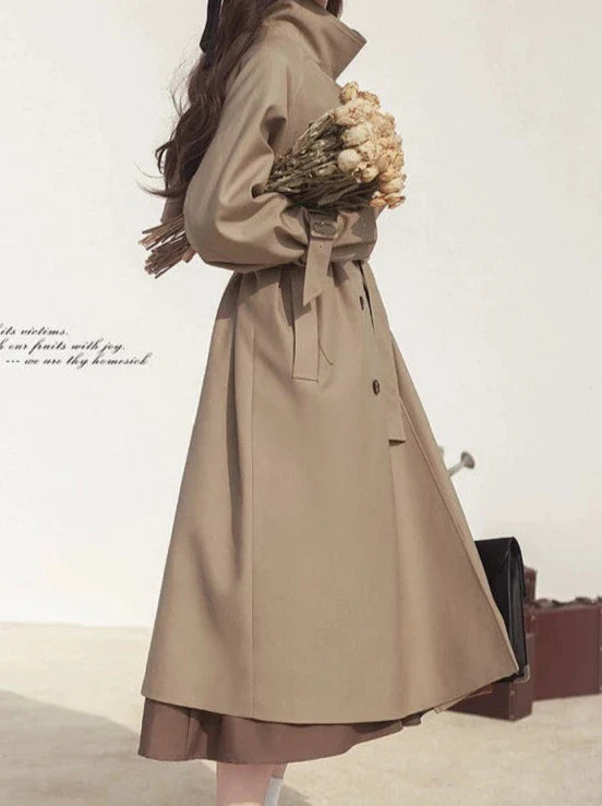 トレンチコート レトロスタイル ブリティッシュカーキ エレガント