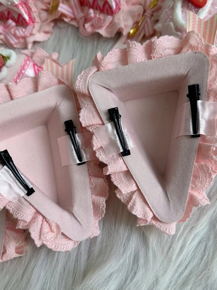 Triangle Print Hat Decoration Sweet Strawberry Mini Cake Bow with Pink Lolita