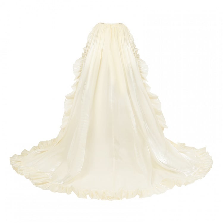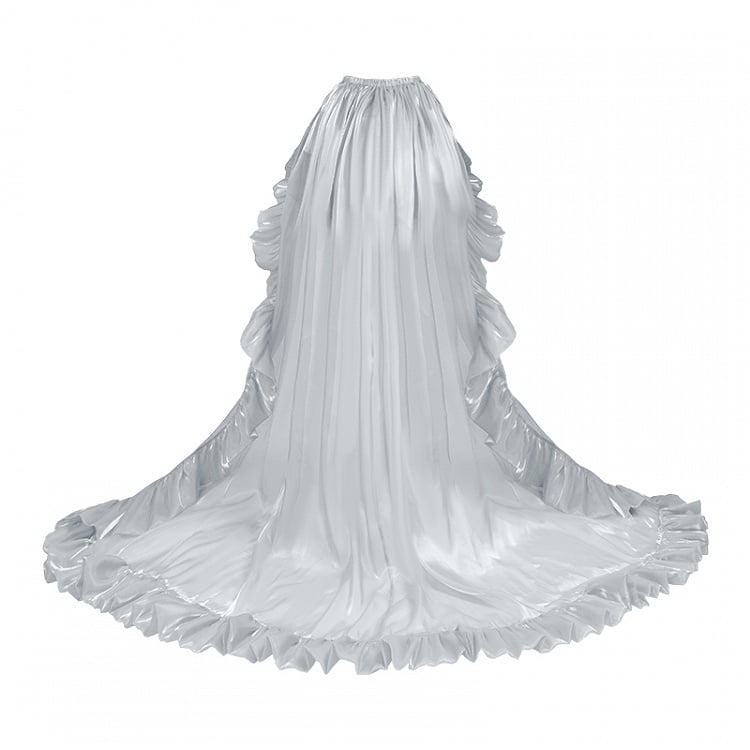 / トリムトレインフロアブルー丈フラウンスグレーベージュ