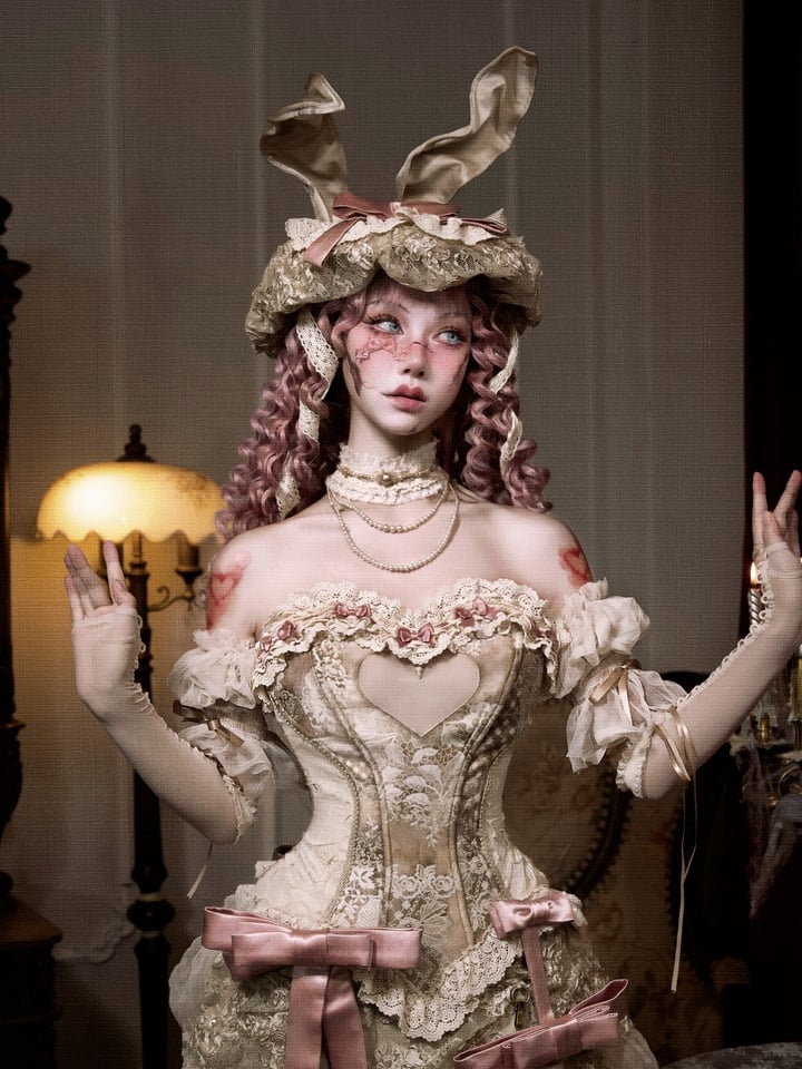ピンクと白のオールドスクールロリータファッションドレス、蝶結びディテール、ロリータJSKセット