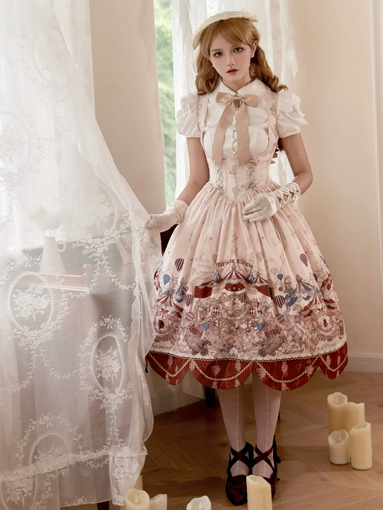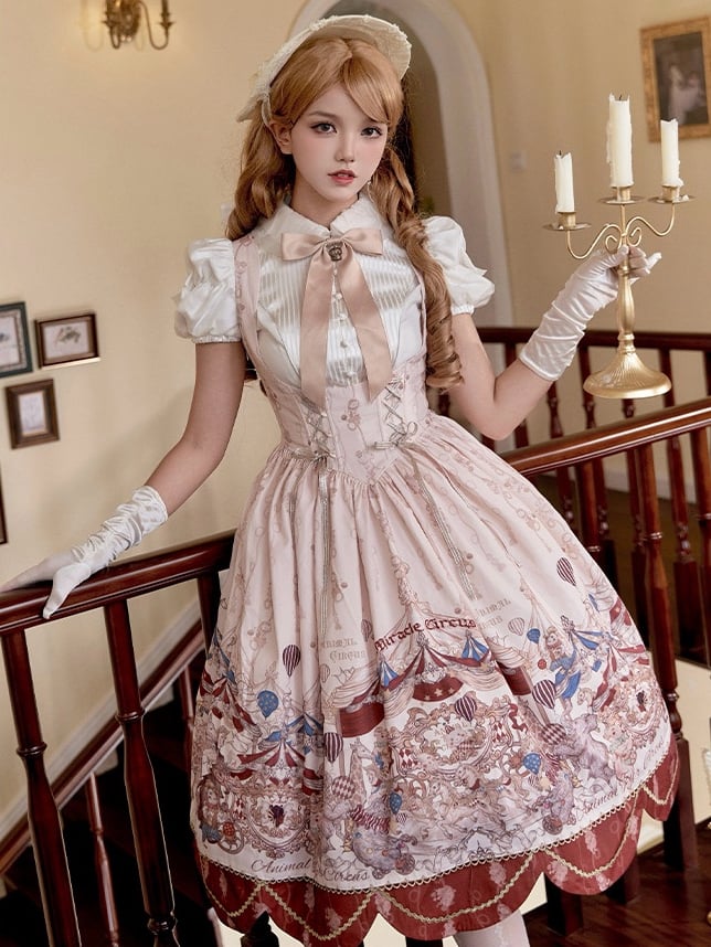 アンダーバスト、ボーンウエスト、サーカスアニマルプリント、ロリータジャンパースカート、ロングバージョン