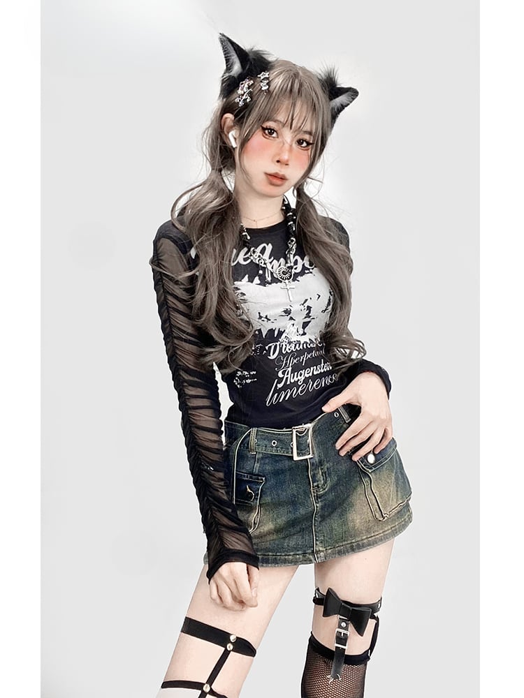 ヴィンテージのダークブルーにダメージ加工を施したデニム素材のグラマラススカート。カーゴポケットがスタイリッシュさと利便性をプラス。チャーミングなデザインは、どんなカジュアルなお出かけにもぴったり。このキュートなスカートで、周りの注目を集めましょう。