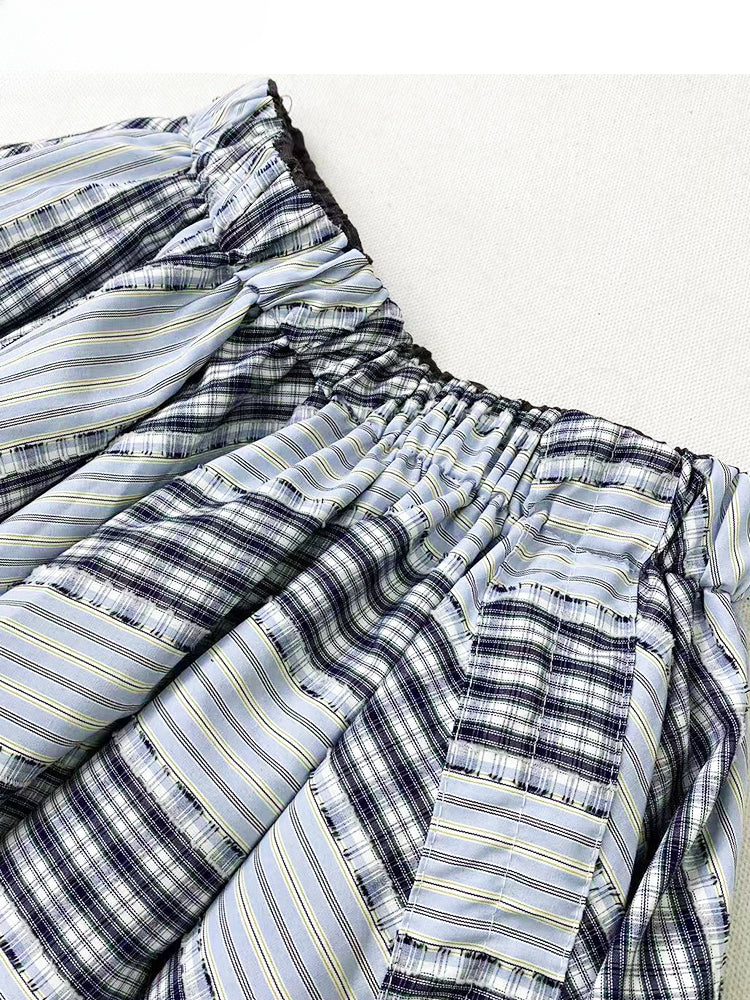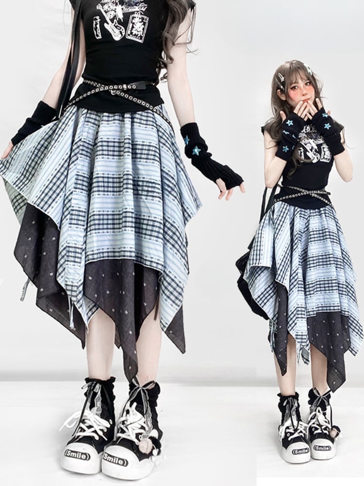 ヴィンテージダスティブルーのチェック柄ハンカチーフヘムグラマラススカートで、ワードローブに魅力をプラスしませんか?繊細なハンカチーフヘムデザインと美しいダスティブルーのチェック柄が、愛らしくキュートな雰囲気を醸し出し、どんなシーンにもぴったりです。
