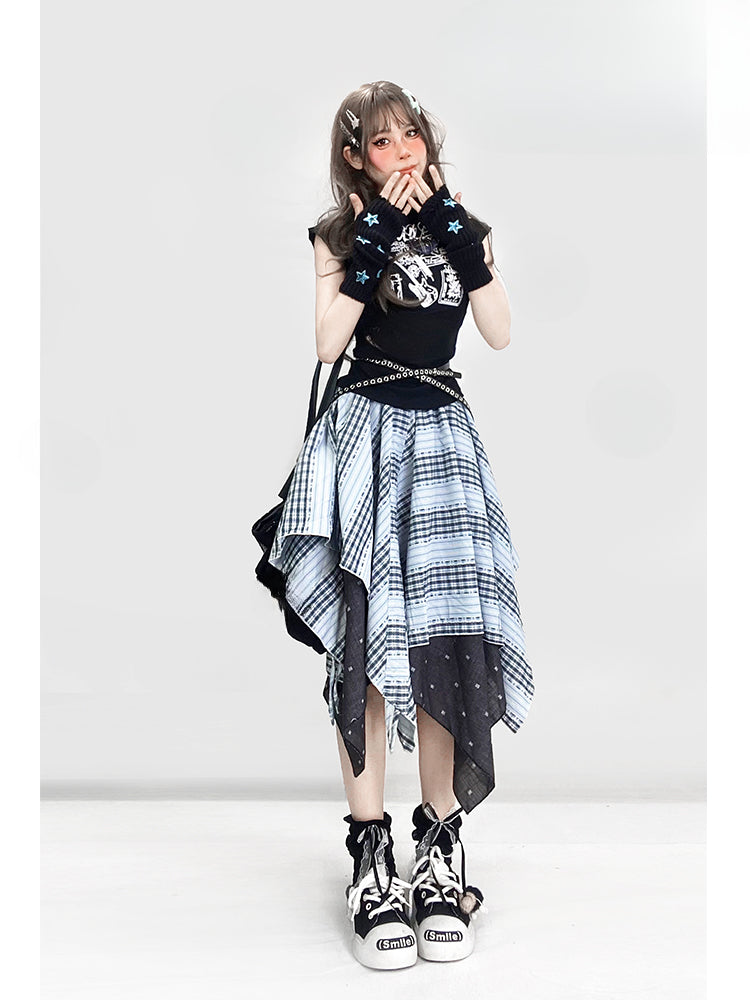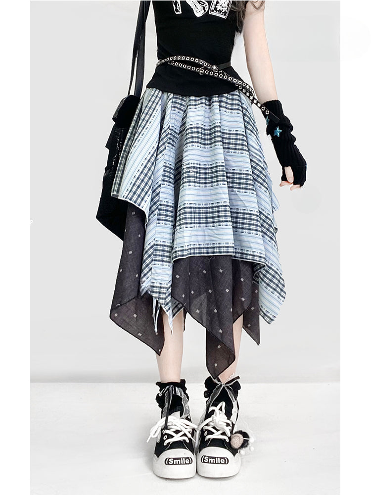 ヴィンテージダスティブルーチェック柄ハンカチ裾グラマラススカート