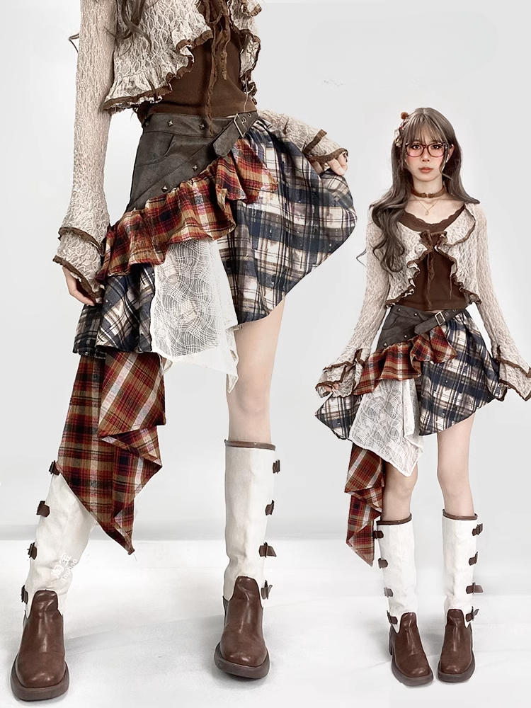 グラマラススカートで、ワードローブにヴィンテージの魅力をプラス。ローウエストとアシンメトリーな裾が、伝統的なチェック柄にモダンなひねりを加えます。このスタイリッシュなアイテムで、キュートで遊び心のある一面を演出しましょう。