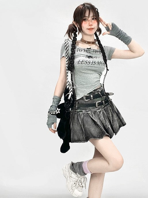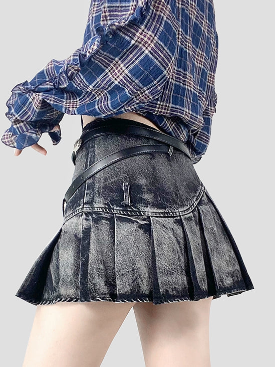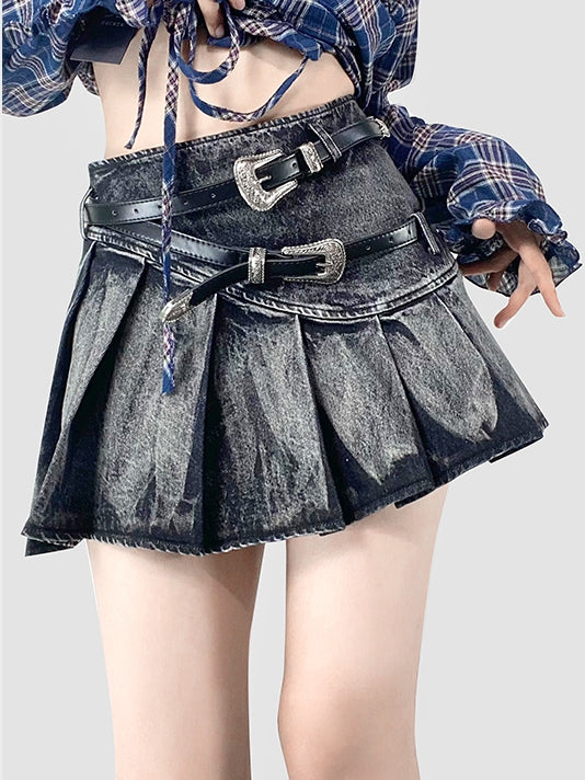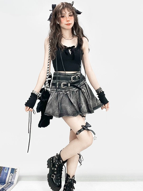 ウエストベルトがカワイイ、ダブルブラックのほろ苦いプリーツスカート