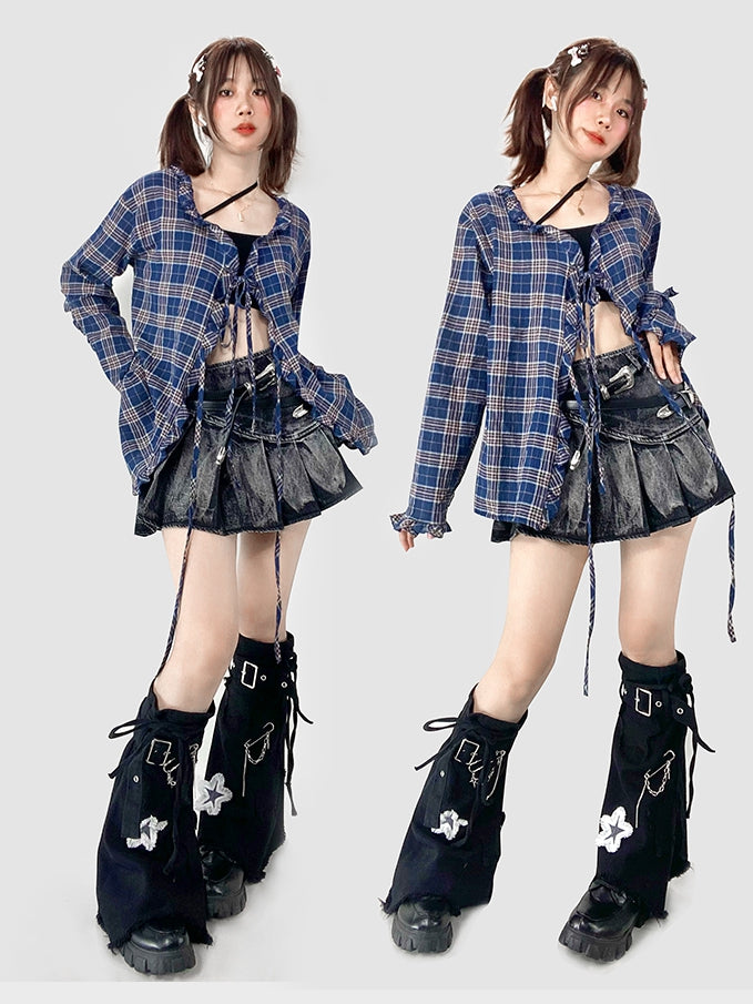 青と白のオールドスクールロリータファッションドレス 蝶結びディテール JSK セット