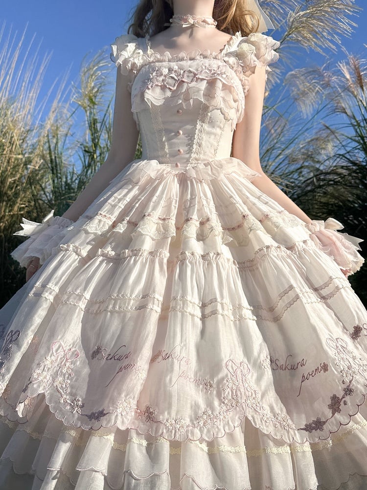 桜ピンクバスクウエスト桜刺繍プリンセスロリータジャンパースカート