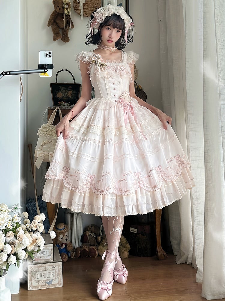 ウエスト刺繍バスクジャンパーピンクプリンセス桜スカートブロッサムチェリーロリータ