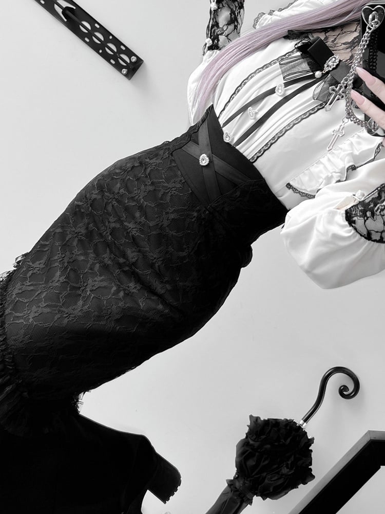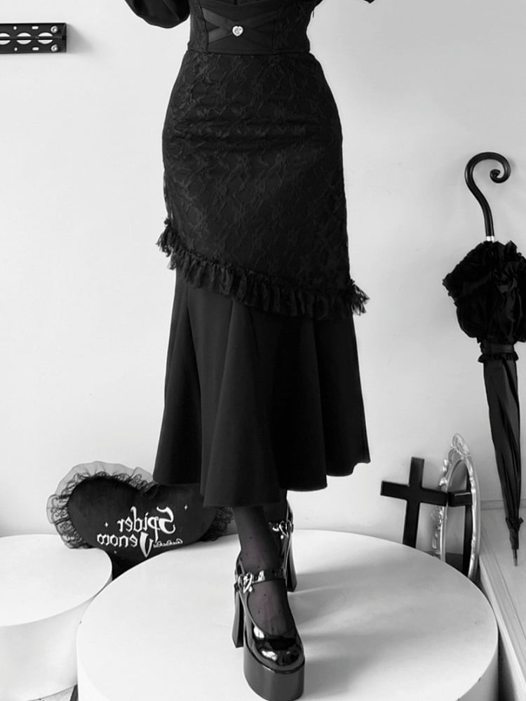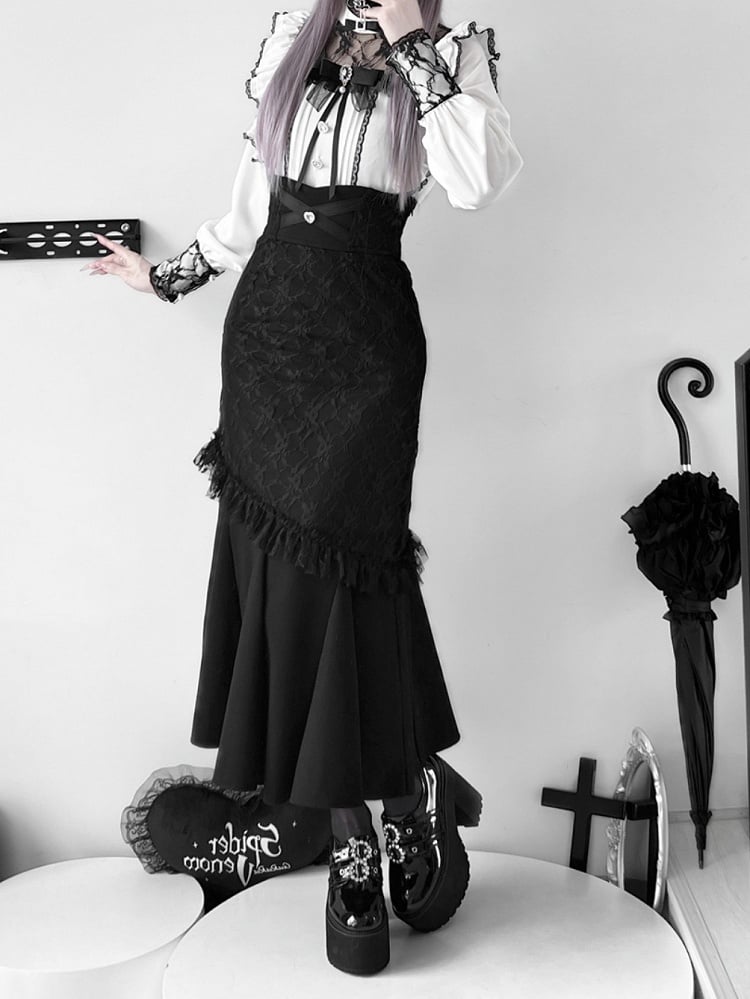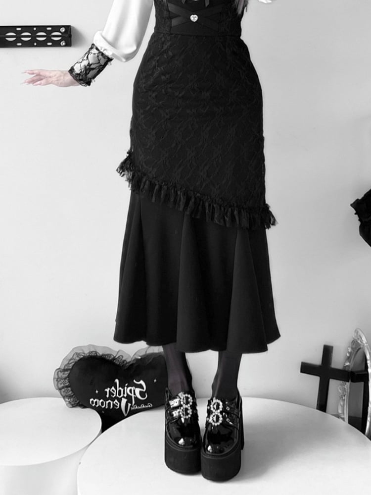 ブラックハイウエストハートラインストーンジライケイマーメイドスカート