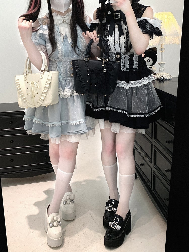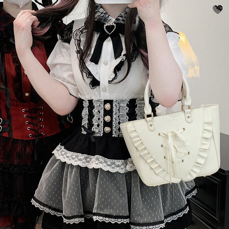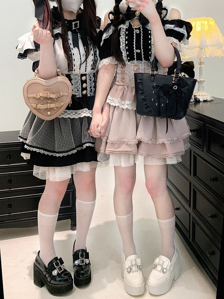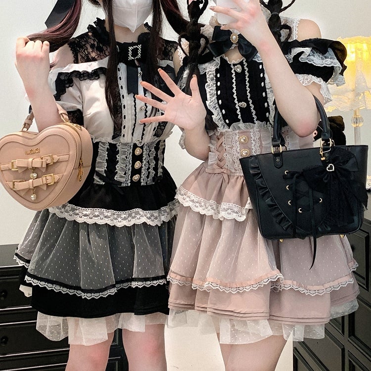 黒と白のオールドスクールロリータファッションドレス蝶結びロリータJSKセット