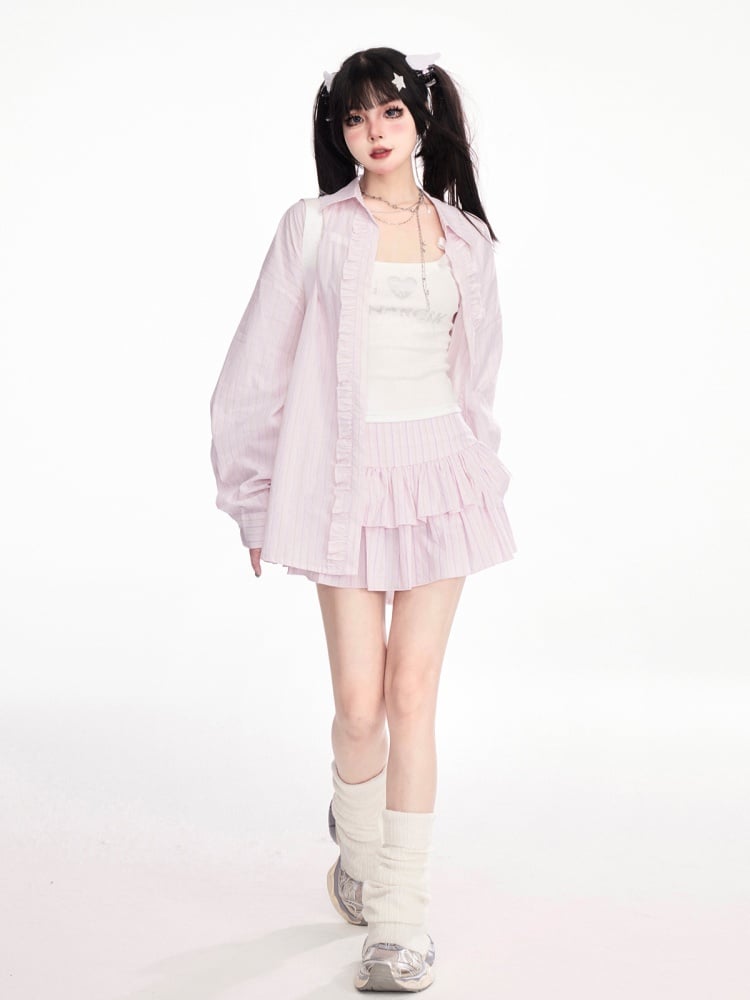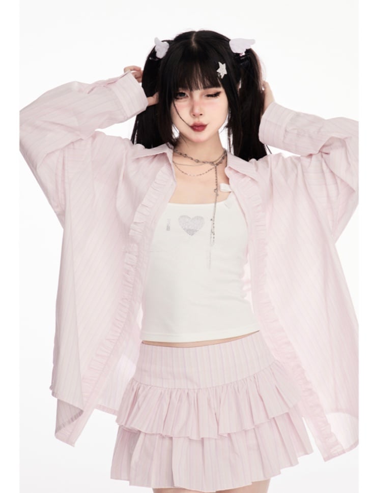 ピンクと白のオールドスクールロリータファッションドレス、蝶結びディテール、ロリータJSKセット