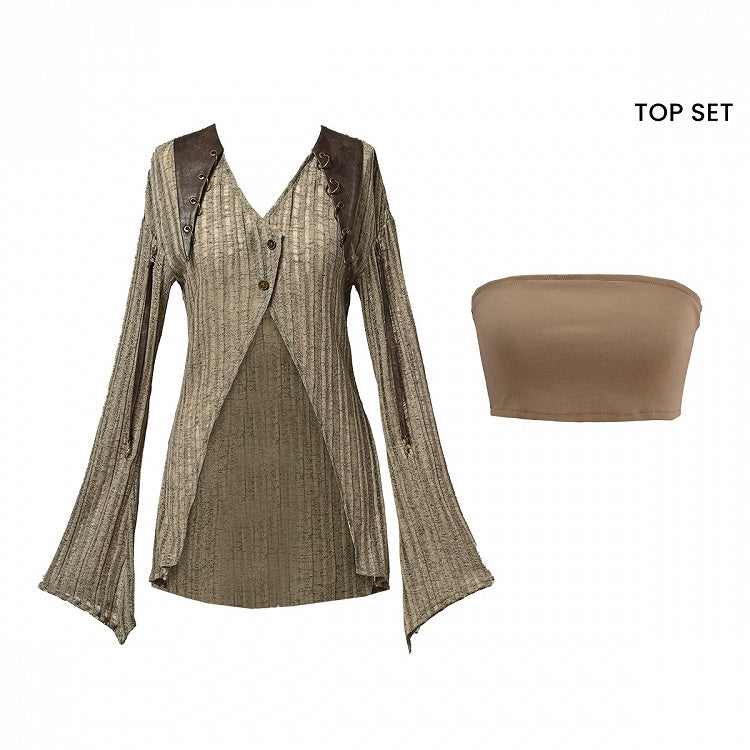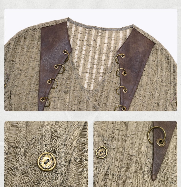 Light Coffee V-neck Wasteland Punk Slim Fit Knit Top