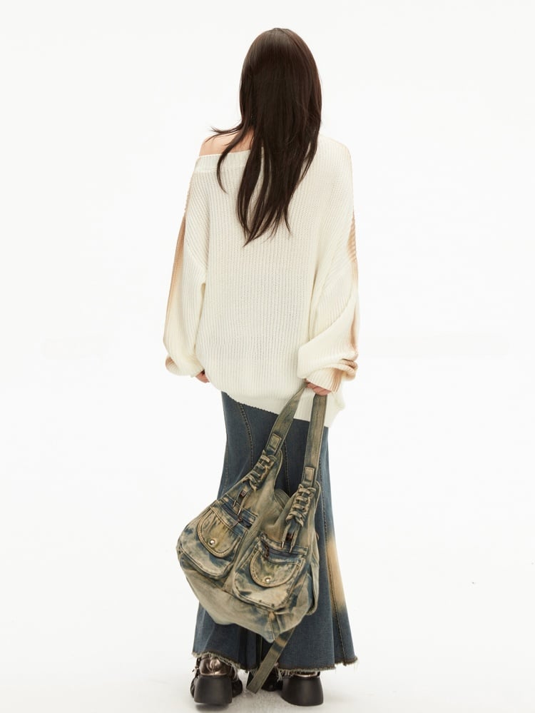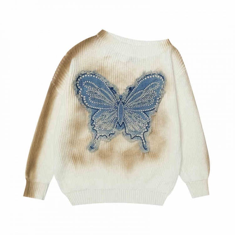 ウェイストランドパンク バタフライアップリケ アプリコット アシンメトリーネックライン セーター