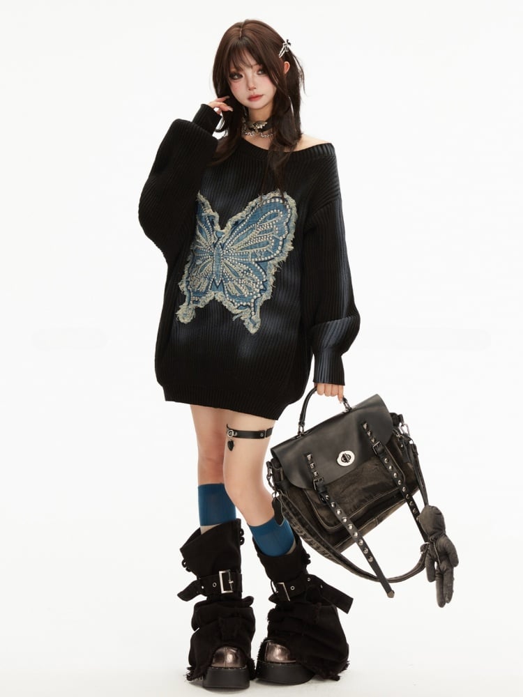 ウェイストランドパンク バタフライアップリケ ブラックセーターで、エッジの効いたスタイルに挑戦しませんか?アシンメトリーなネックラインと精巧なバタフライアップリケが、ワードローブに個性的なアクセントを添えます。シーズンを通してスタイリッシュでキュートな着こなしをお楽しみ下さい!