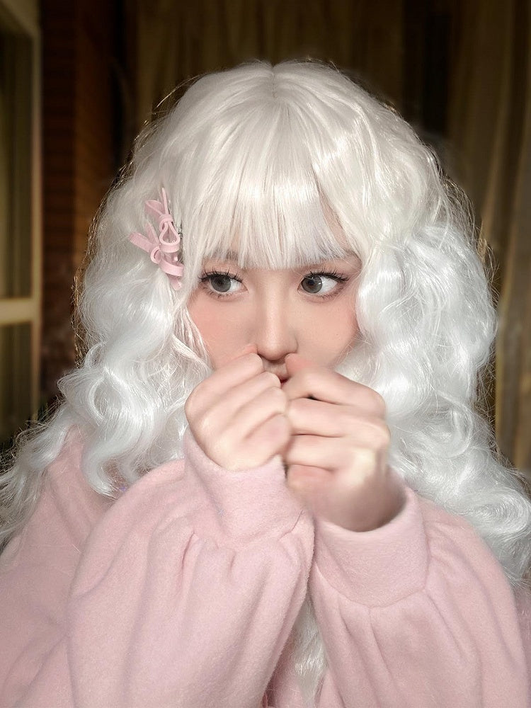 ウェーブロングホワイトフルウィッグ(前髪70cm)