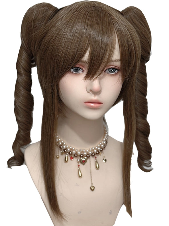 ブラウンのミディアムウィッグ + ウェーブポニーテール 2個 クロークリップ