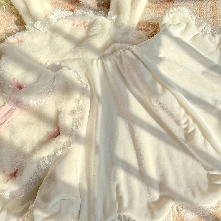 White and Cape with Winter Kitty Pink Ears Lolita Plush Bunny Sweet /